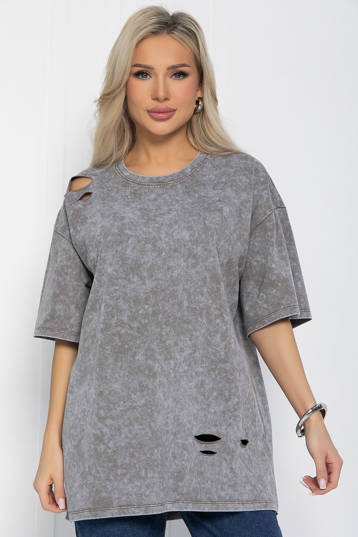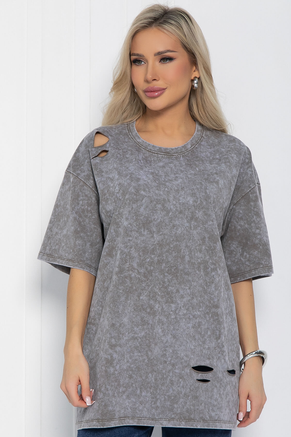 Футболка, которая идеально подойдёт для любой модницы, желающей выделиться из толпы! Эта футболка выполнена с добавлением хлопка, что обеспечивает максимальный комфорт и удобство при носке. Благодаря эффекту варки она приобретает особый шарм и становится по-настоящему уникальной. Эта футболка станет универсальным элементом вашего гардероба, который можно сочетать с джинсами, юбками или шортами. Она подойдёт для любого случая и создаст непринуждённый и стильный образ.