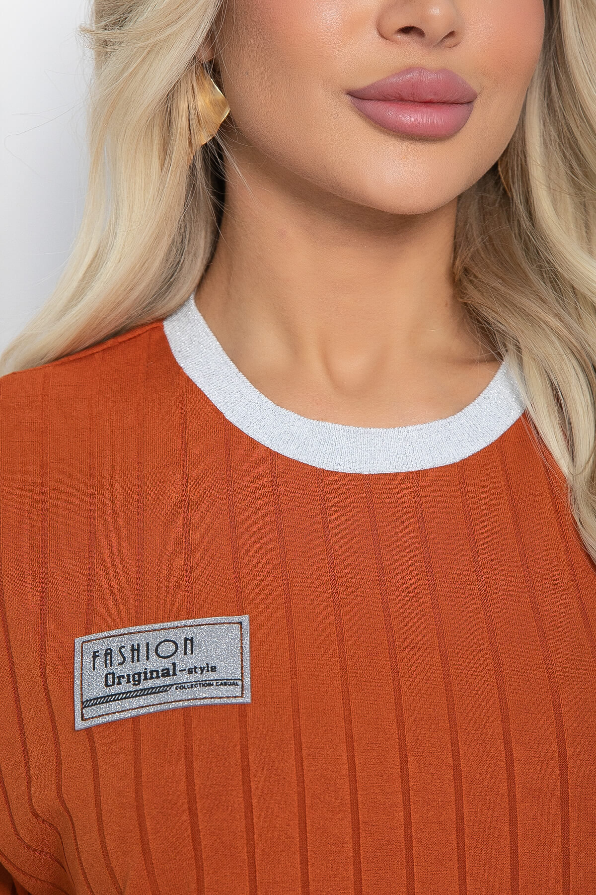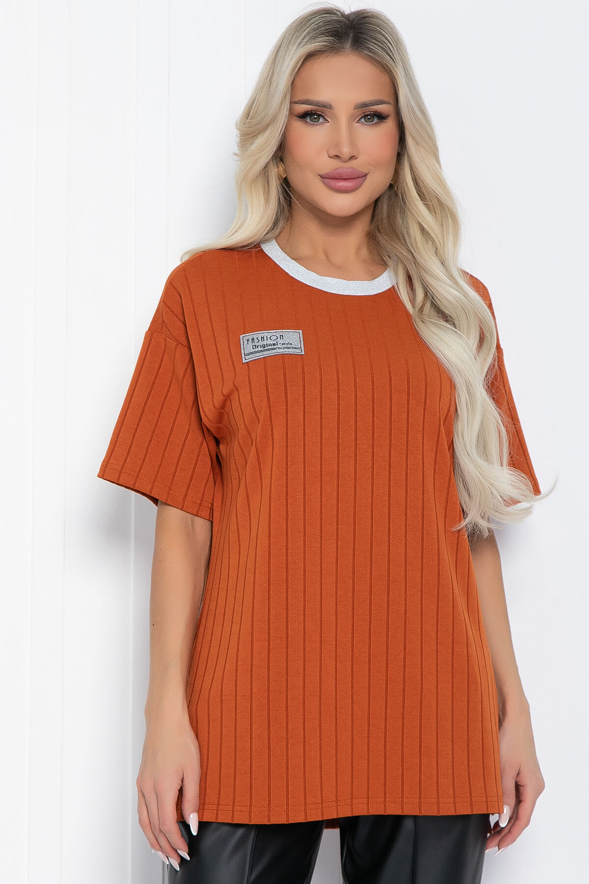 Футболка из трикотажа "Лапша" идеальный вариант на каждый день! Изделие украшает нашивка спереди на груди. Рукав укороченный, со спущенным плечевым швом. Идеально смотрится с джинсами и с брюками. Акцентный воротник придает особый шарм!