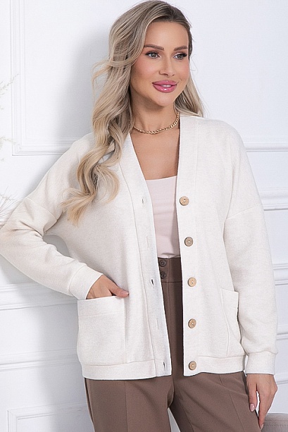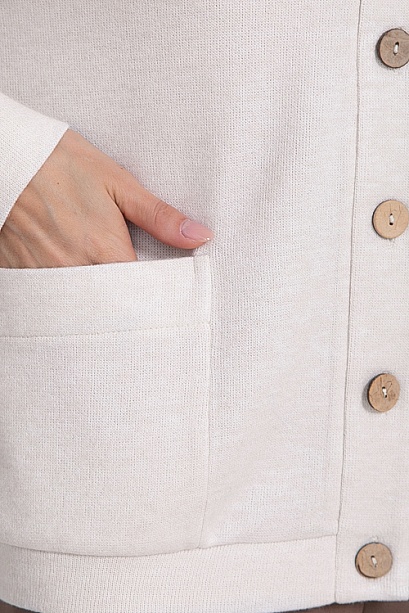 * Кардиган свободного силуэта из комфортного, качественного трикотажа ангора с центральной застежкой по переду на петли и пуговицы, с удобными накладными карманами.