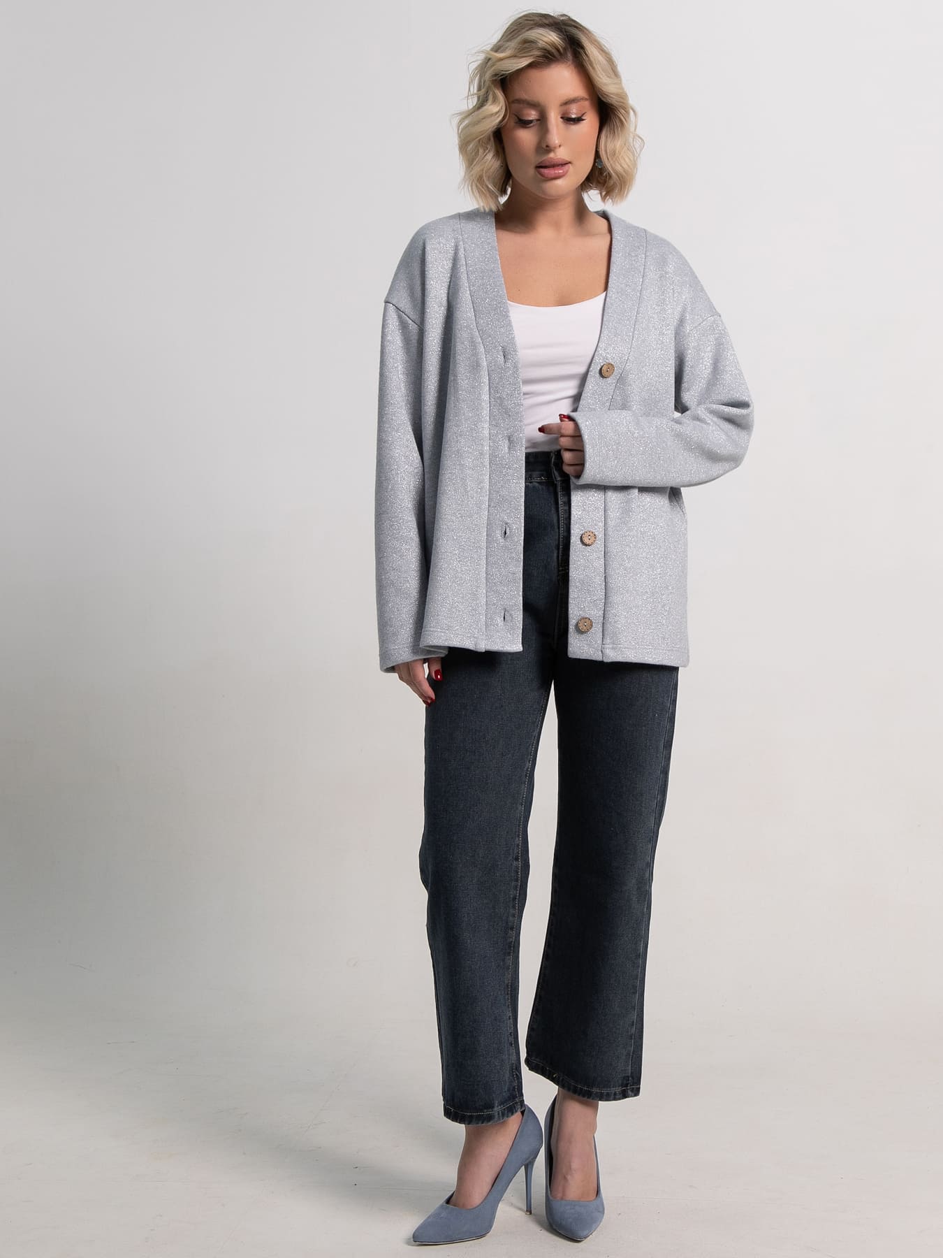Теплый кардиган с люрексом и кокосовыми пуговицами: Ваш стильный спутник. Окутайте себя нежностью и блеском! Представляем вашему вниманию красивый кардиган, созданный для комфорта и стиля. Выполненный из высококачественной теплой ткани, он согреет вас в прохладную погоду, а вплетенная нить люрекса придаст изделию благородное мерцание. Натуральные пуговицы из кокоса не только функциональны, но и служат изящным акцентом, добавляя нотку природной красоты. Идеально подходит для создания уютных и элегантных образов.