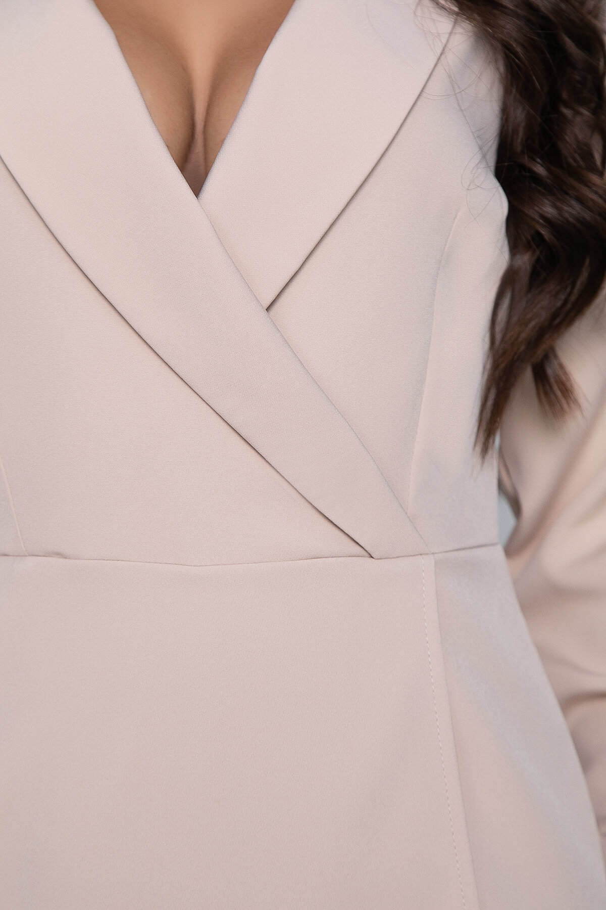 Элегантный современный комбинезон. А-симметричный низ по переду юбки, сзади шорты, отрезной по талии, воротник отложной, манжеты на застежку пуговку. Пояс с пряжкой в комплекте. Рукав втачной длинный.