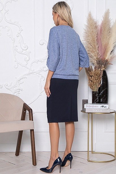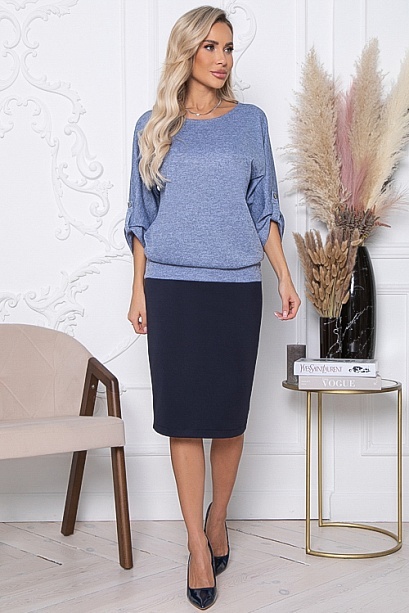 Комплект из блузки и юбки.Блузка из трикотажного полотна с цельнокроеными рукавами с патами.По низу притачной пояс.Юбка карандаш из трикотажного полотна джерси с эластичной резиной в поясе.