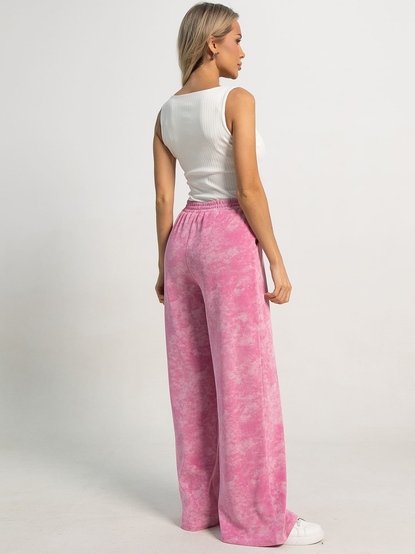 Ваш идеальный выбор для комфортных образов — костюм в розовом цвете с принтом «варенка». Отличительная особенность этой модели — широкие брюки палаццо. Свободный крой верха и спущенный рукав создают ощущение комфорта, что особенно актуально в прохладную погоду. Брюки по талии на резинке обеспечивают дополнительный комфорт. По боковым швам расположены карманы. Этот комплект идеально подойдет тем, кто ценит свободу движений и уют без лишних деталей.