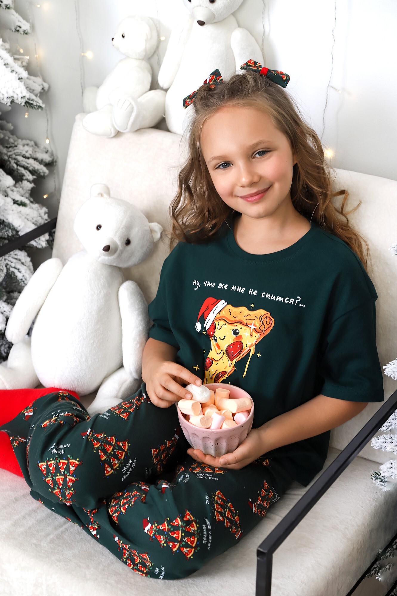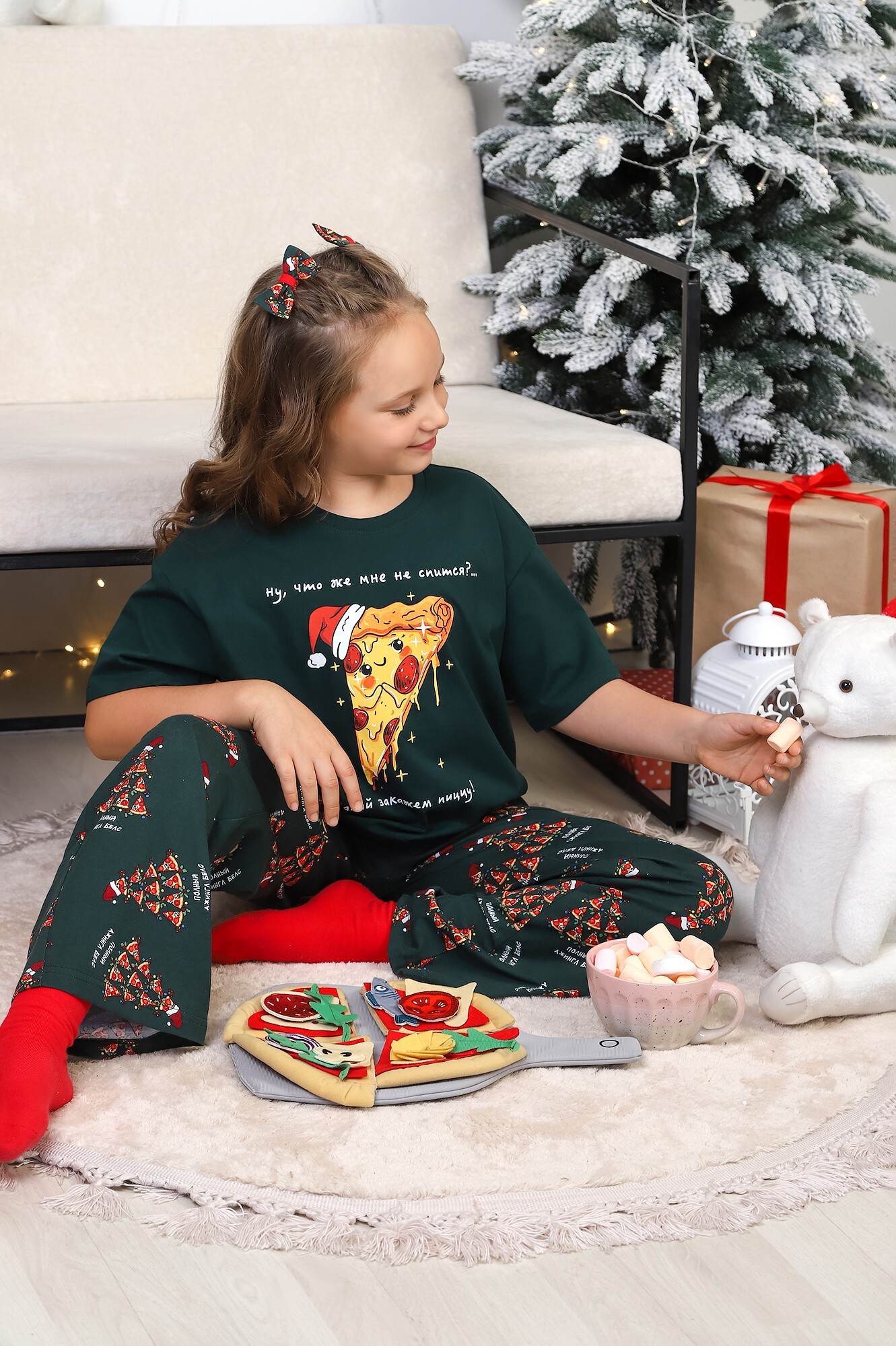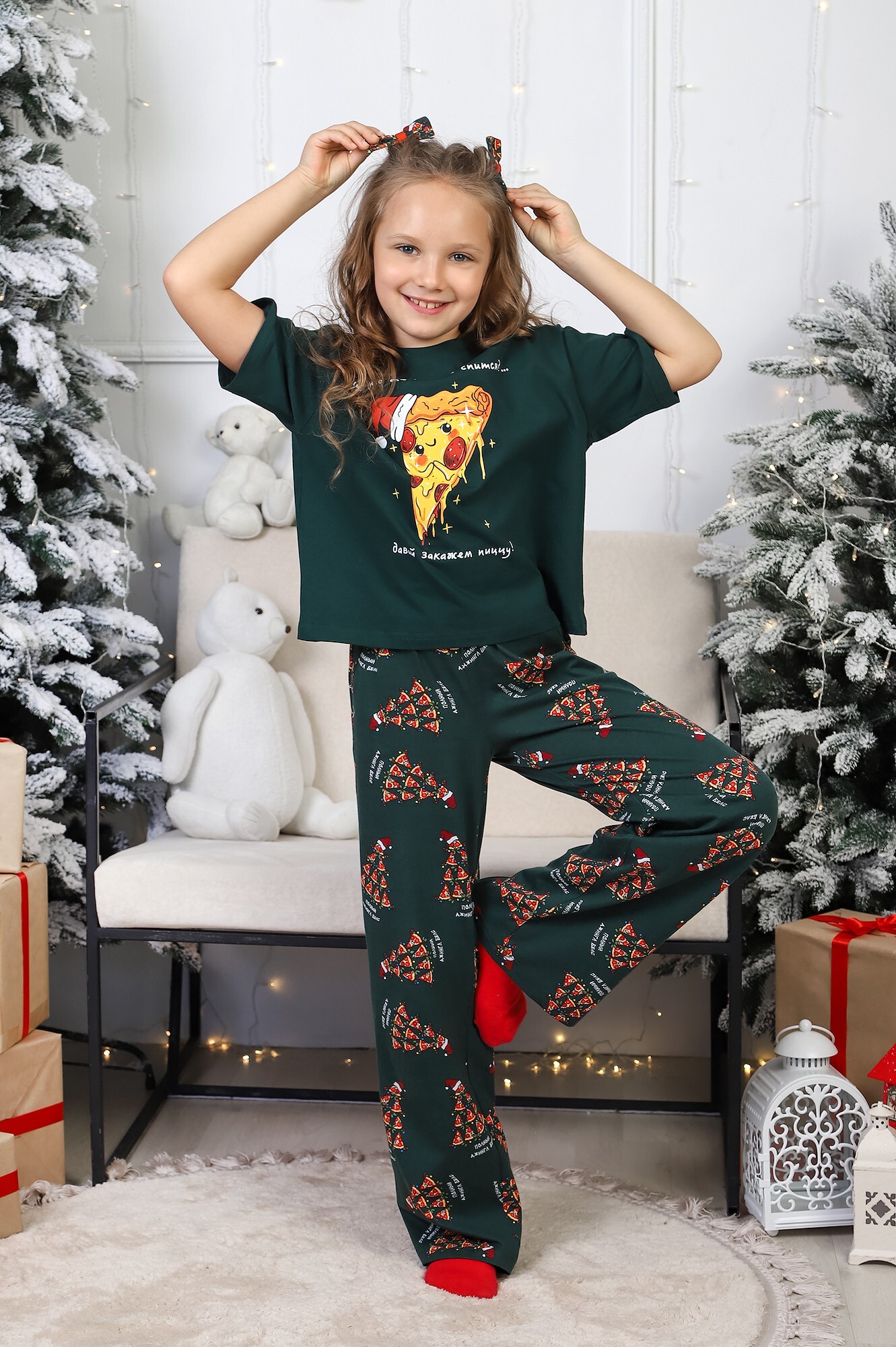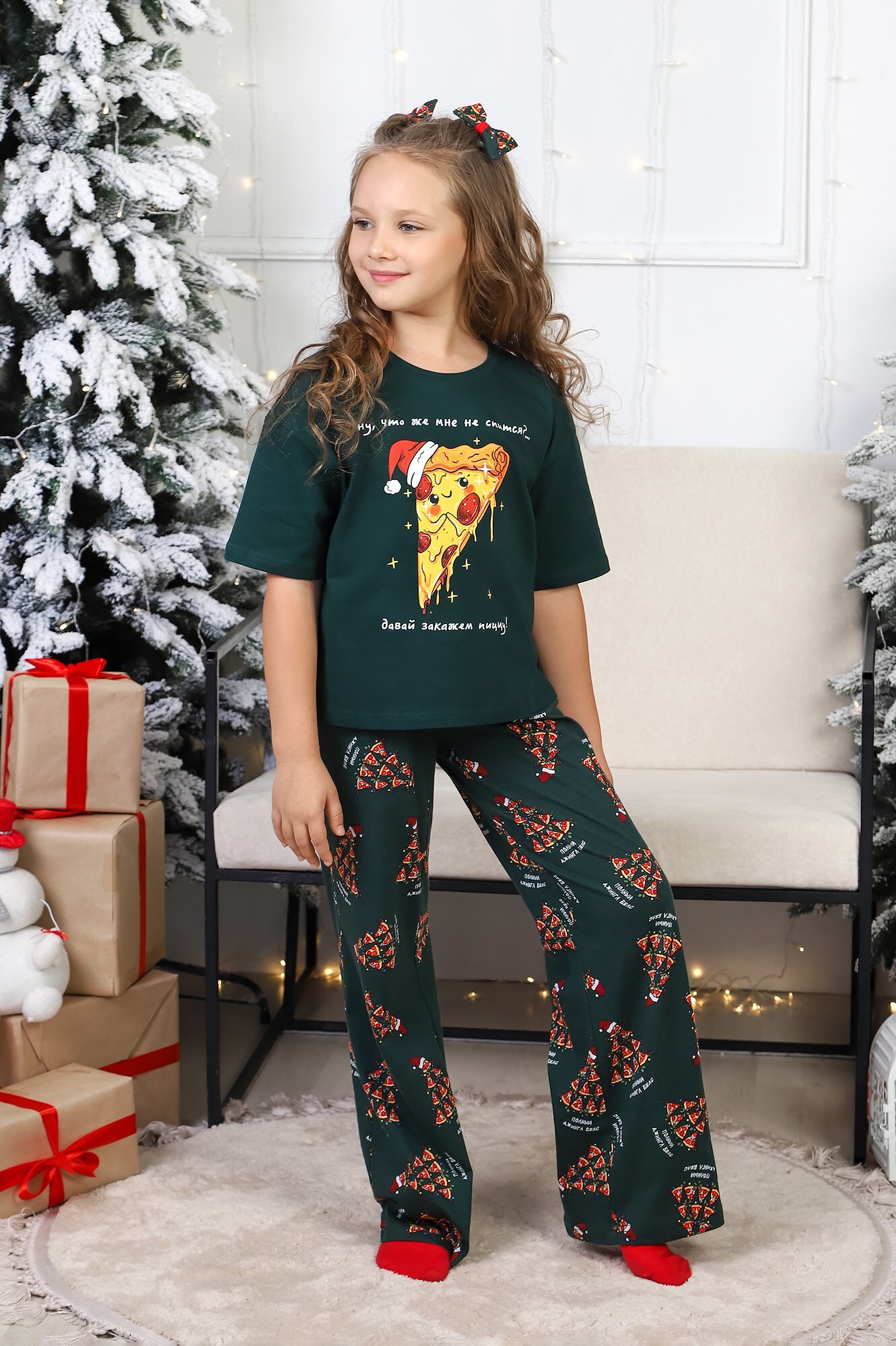 Костюм для девочки. Футболка оверсайз, с принтом. Брюки выполнены из полотна эксклюзивного дизайна; расширенные к низу, с боковыми карманами, на притачном поясе с отстроченной эластичной тесьмой.