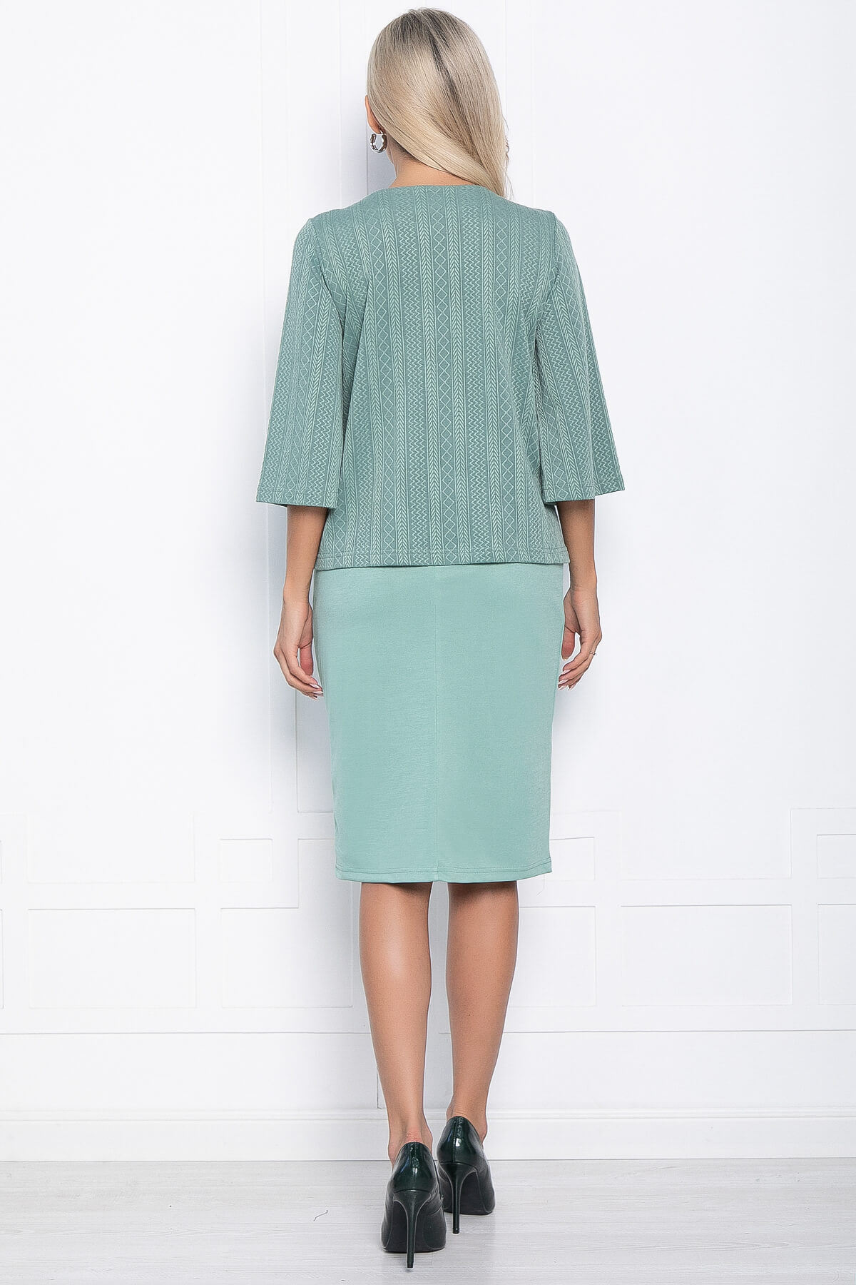 Комфортный и элегантный костюм на каждый день. Костюм состоит из джемпера и юбки карандаш. Юбка на резинке. Юбка-карандаш незаменима при создании делового образа. Компанию ей составляет свободная блузка с рукавом, который книзу расширяется.
