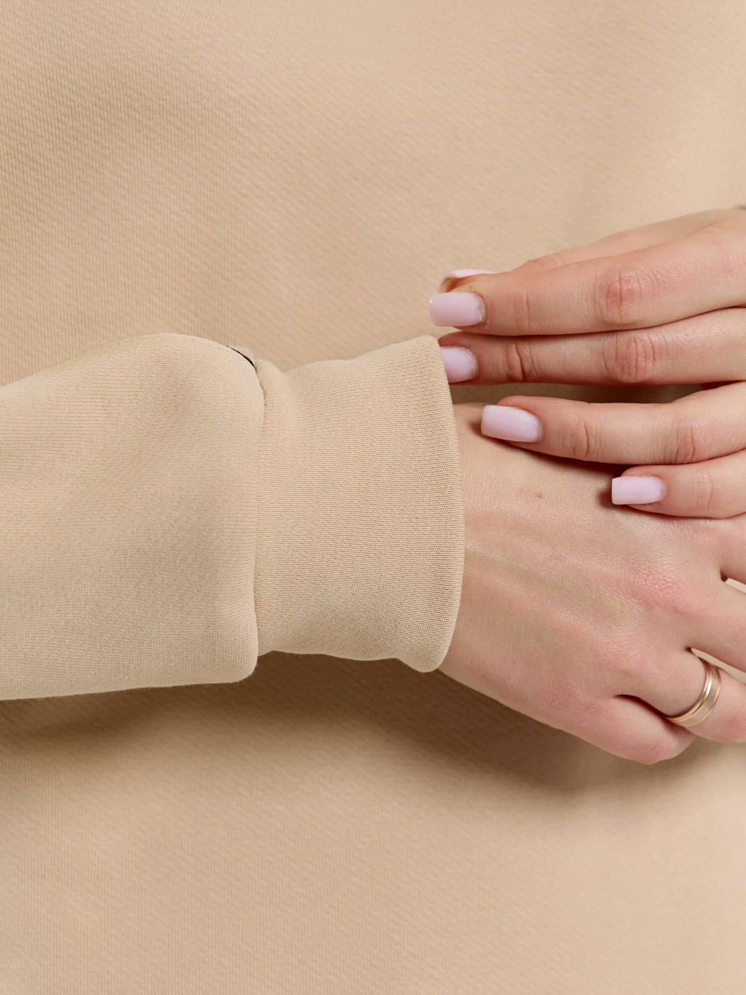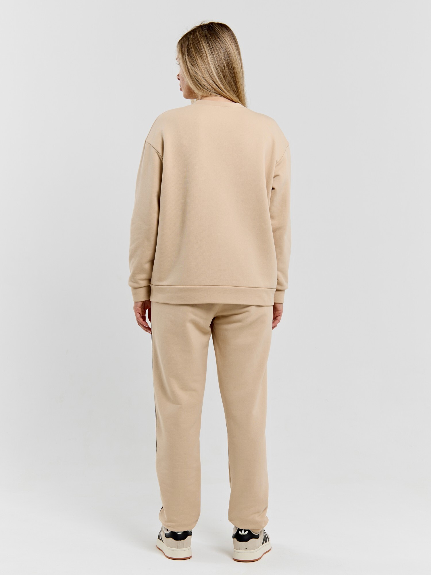 Костюм молодежный из трикотажного полотна «футер 3-х нитка диагональ» состоящий из джемпера и брюк. Джемпер – прямого силуэта, с длинными втачными рукавами, обработанными манжетами, горловиной овальной формы с втачной планкой и притачным поясом по низу изделия. Полочка и рукава состоят из двух деталей в шве соединения, которых,