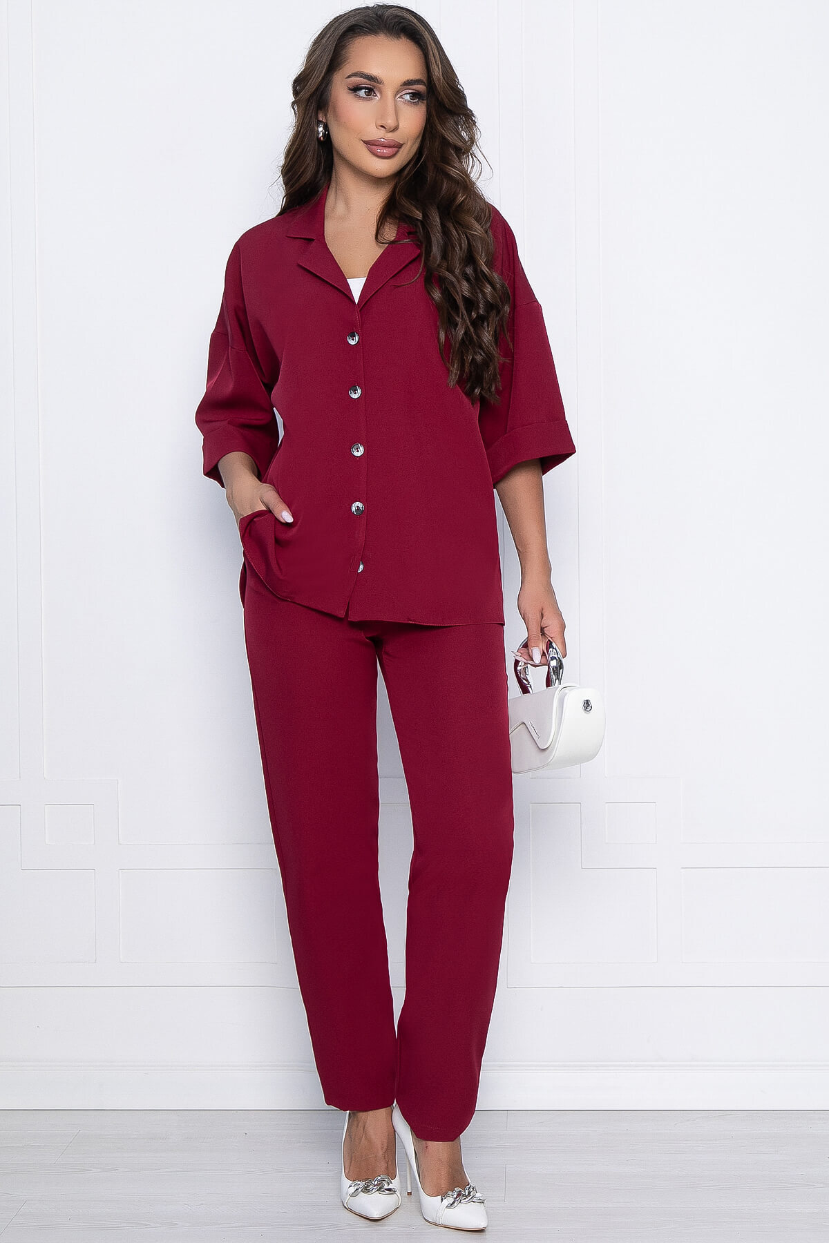 Яркий брючный костюм - один из лучших вариантов разнообразить гардероб! В нём вы будете себя чувствовать уверенно и комфортно. Можно носить как совместно, так и раздельно. Этот брючный костюм подойдет для работы в офисе, деловых встреч и мероприятий. Жакет свободного кроя на пуговицах, рукав 3/4, спущенный на манжете, разрезы по боковым швам. Брюки полуприлегающего силуэта на резинке, есть карманы.