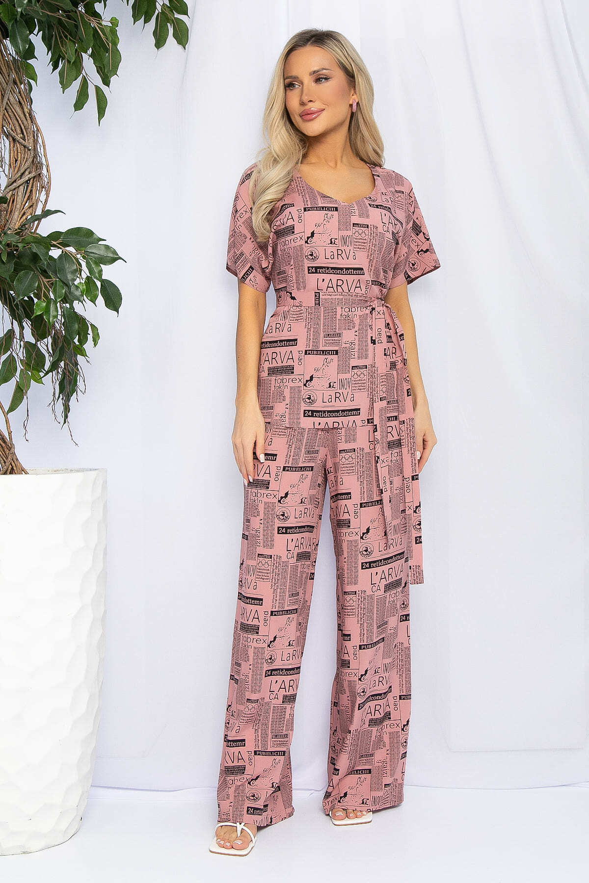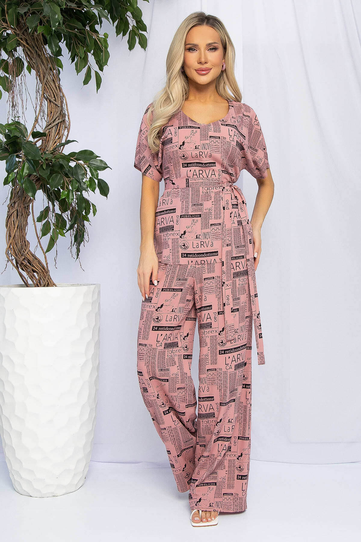 Легкий и очень приятный к телу брючный костюм из струящегося хлопка в модных цветовых оттенках этого сезона с необычным модным принтом. Натуральный состав ткани особенно важен в летнее время. Блуза свободного кроя с коротким рукавом-кимоно и разрезами по бокам. Свободные брюки в стиле палаццо придают костюму легкость и особый шик. Брюки имеют пояс на комфортной резинке, что позволяет чувствовать себя свободно и не сомневаться при выборе размера. Костюм имеет съемный пояс в комплекте. Свободный силуэт костюма подходит абсолютно для любой фигуры. Костюм актуален для любого мероприятия, романтических встреч и летних прогулок.