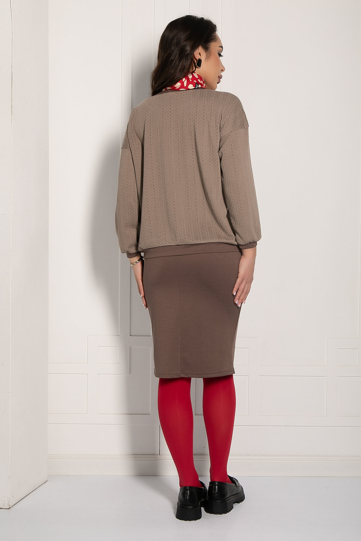 Акцентные детали в виде декоративных планок и манжетов, которые контрастируют от базы изделия, придают трикотажной двойке интересную изюминку и добавляют визуальную структуру в монотонный аутфит. Кстати, отделка материалом контрастного тона отлично вписывается в концепцию актуального в этом сезоне направления колор-блок. Совсем не обязательно создавать сложный многослойный комплект, чтобы оказаться на волне трендов – достаточно одного правильно подобранного костюма с удачной цветовой геометрией.