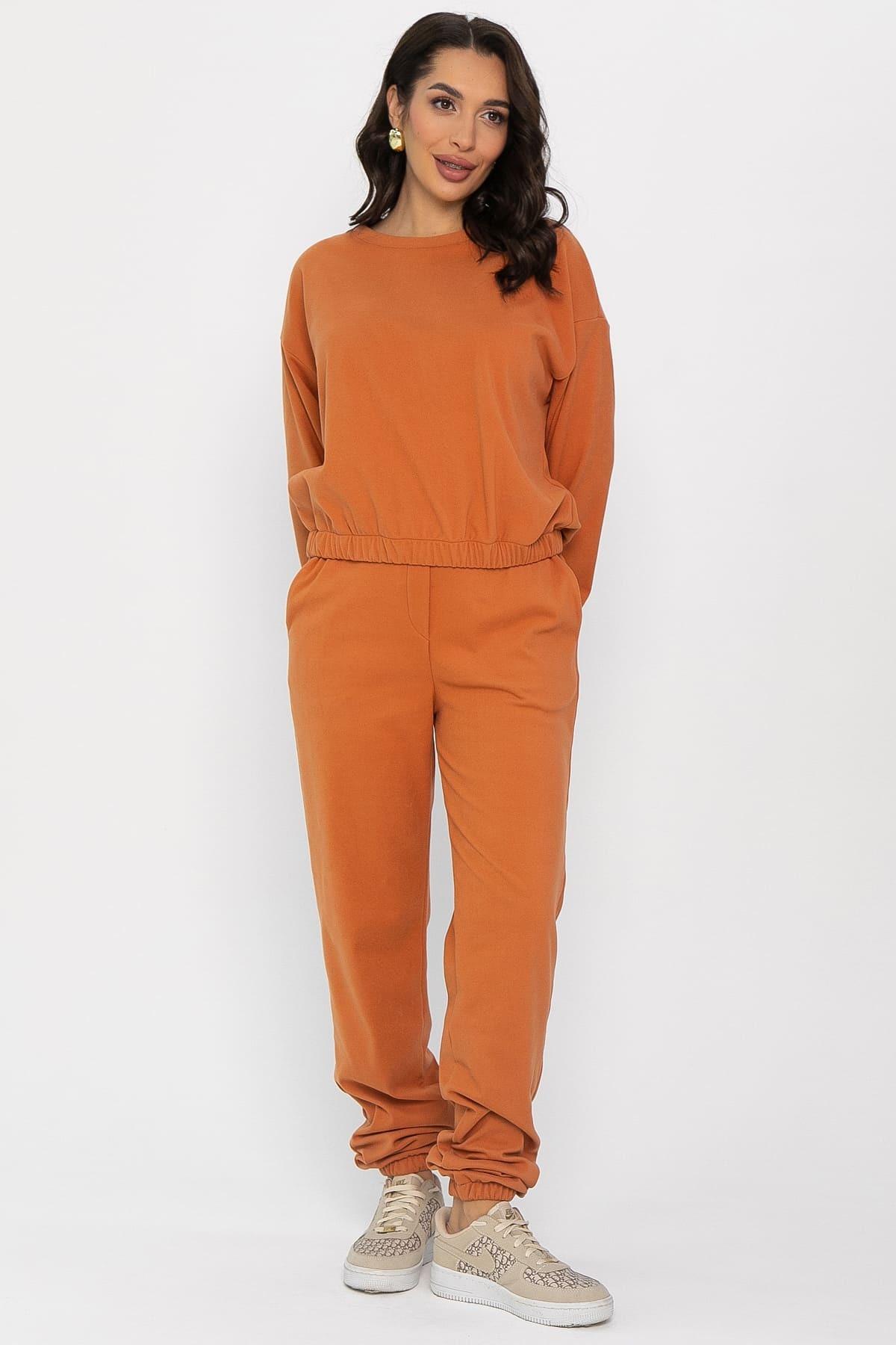Представляем вам великолепный спортивный женский костюм в восхитительном оттенке корицы! Этот костюм выполнен из мягкого и теплого фланелевого материала, который предоставляет невероятный комфорт и уют в прохладную погоду. Брюки с резинкой по талии и внизу, с удобными карманами по бокам. Верх костюма с резинкой по низу и по рукавам, с округлой горловиной. Такой фланелевый костюм прекрасно подходит как для домашнего отдыха, так и для дачи или активных прогулок. Обновите свой гардероб с этим универсальным трикотажным костюмом — сочетание стиля, уюта и практичности для современной женщины!