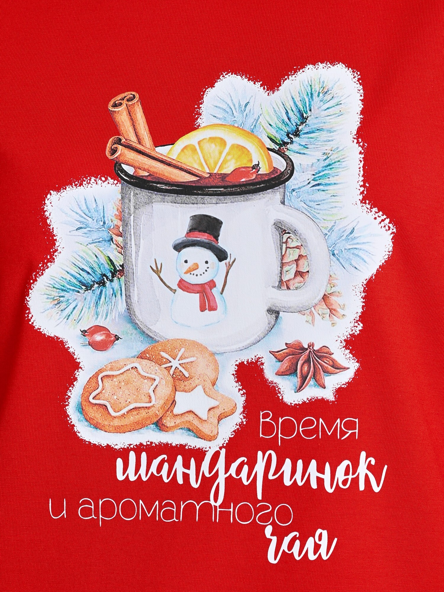 Костюм молодежный из трикотажного полотна «кулирка» в комбинации двух видов: с набивным рисунком и гладкокрашенного в единой цветовой гамме, состоящий из лонгслива и брюк. Лонгслив - из гладкокрашенного полотна, классического покроя, с длинными втачными рукавами по нижнему срезу с эластичной тесьмой, горловиной овальной формы и принтом на полочке, выполненным в технике «шелкографии». Горловина окантована основным материалом.Брюки - из полотна с набивным рисунком, длинные, с карманами в боковых швах. Притачной пояс и низ брюк с эластичной тесьмой.
