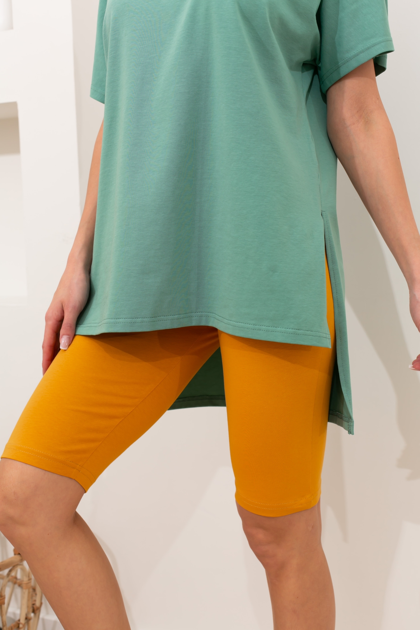 Универсальные легинсы прилегающего силуэта из трикотажного полотна. Пояс на широкой резинке обеспечивает удобную посадку на талии. Отлично сочетается с туниками, свитшотами и удлиненными футболками.