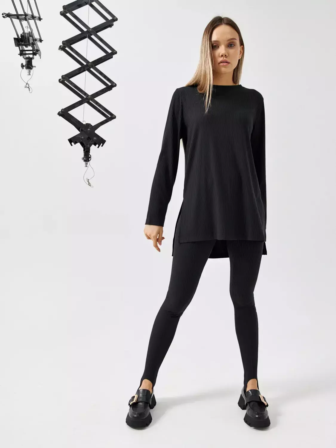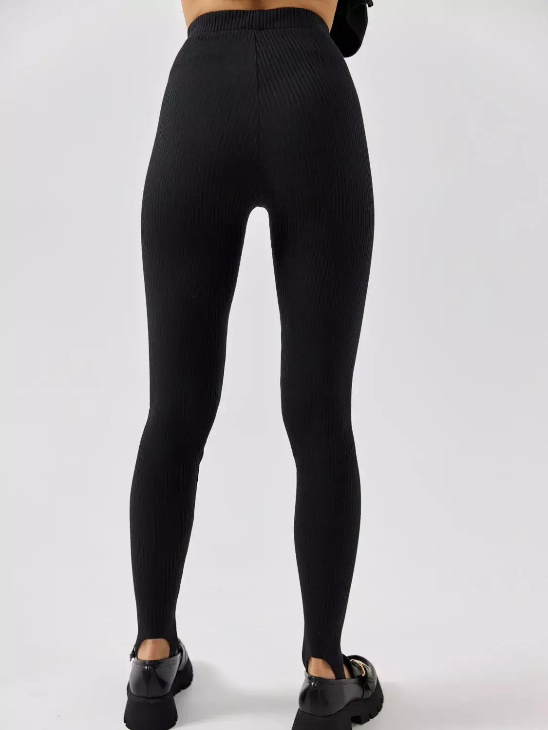 Базовые легинсы с открытой пяткой из плотного трикотажа "лапша". Притачной пояс на резине.