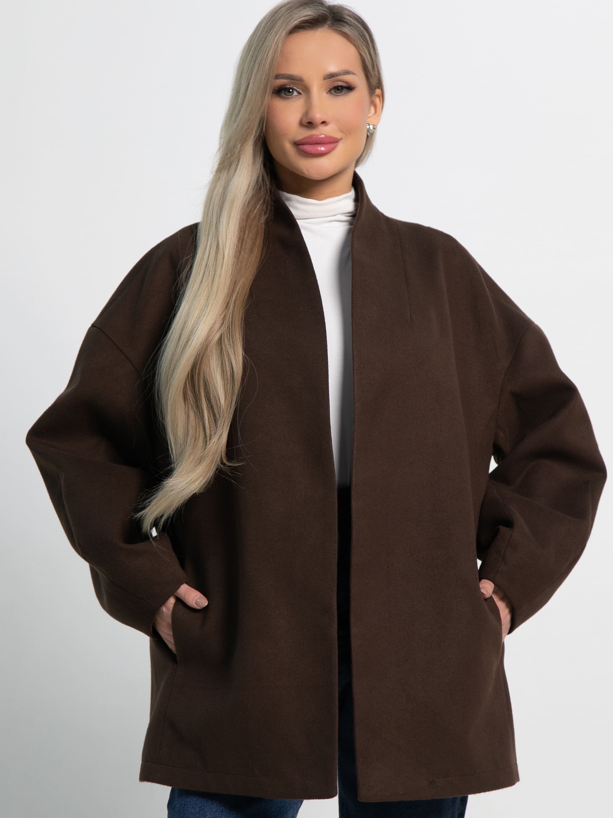 Элегантное женское пальто в изысканном оттенке горького шоколада — ваш незаменимый спутник в межсезонье. Эта модель станет жемчужиной вашего гардероба, гармонично сочетая модный дизайн и практичность. Оно прекрасно подходит как для создания утонченных деловых луков, так и для повседневного использования. В комплекте идет пояс из основной ткани, который позволяет регулировать силуэт, подчеркивая вашу талию и придавая образу женственность. Внутренняя подкладка обеспечивает максимальный комфорт и приятные тактильные ощущения при ношении. Пальто не только согреет вас в прохладные дни, но и добавит нотку элегантности к любому вашему выходу.