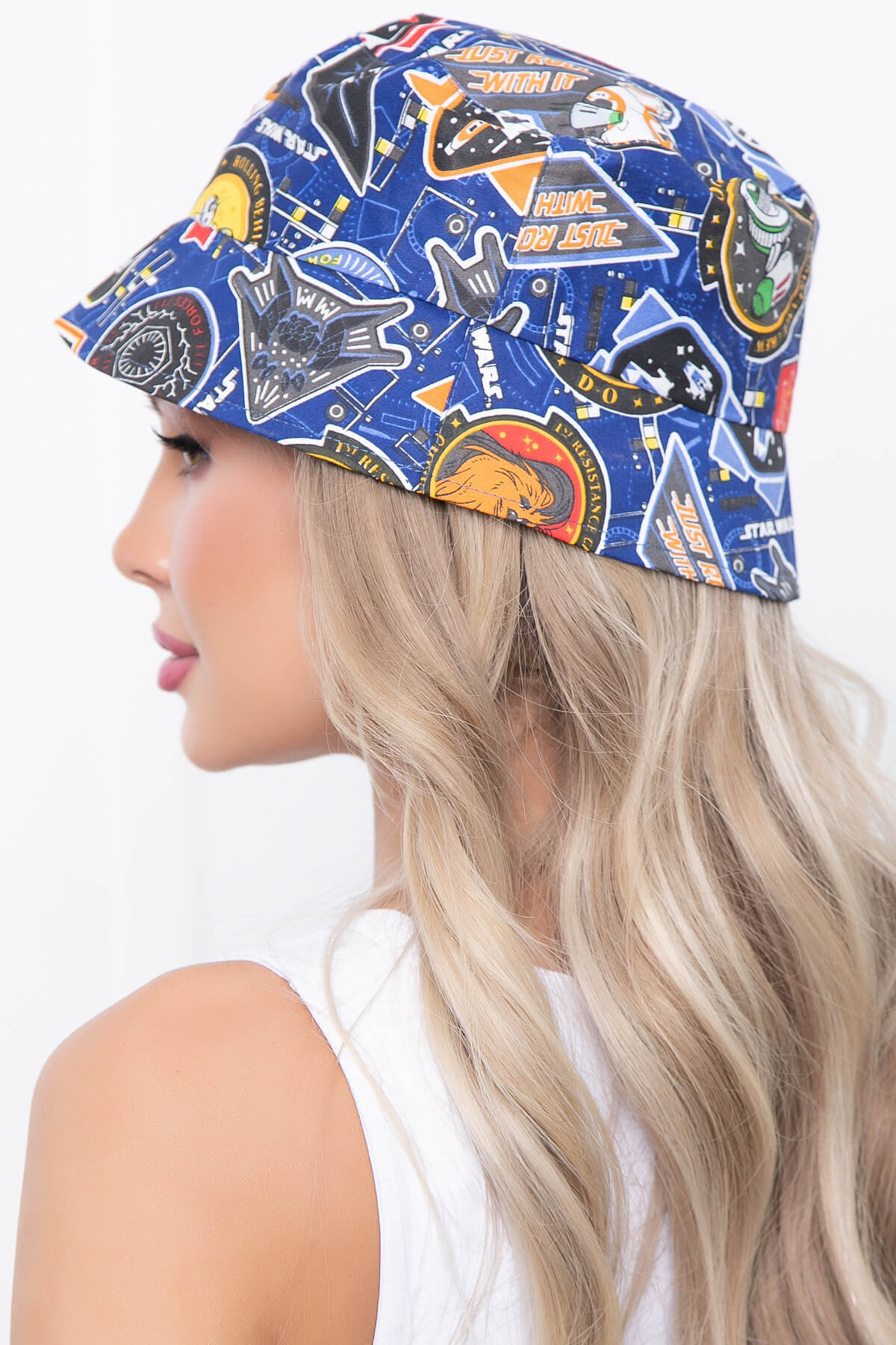 Панама с узкими полями из натурального хлопка с принтом справится с задачей предотвратить перегрев в жаркую пору. Панама имеет яркий дизайн и универсальную форму.