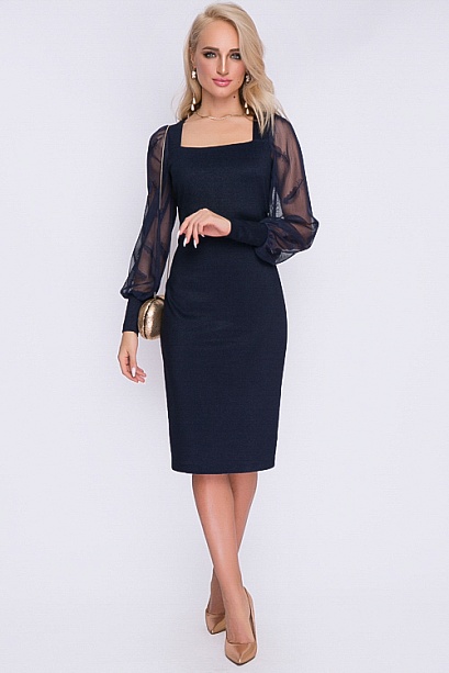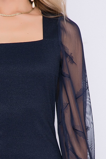 Платье из трикотажного полотна с легким блеском и вырезом каре.Рукав втачной из сетки.