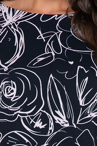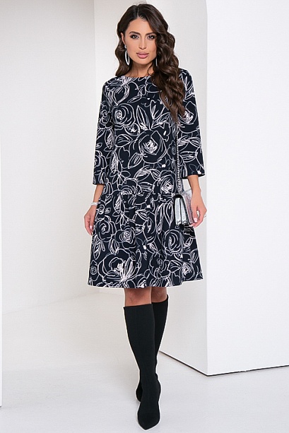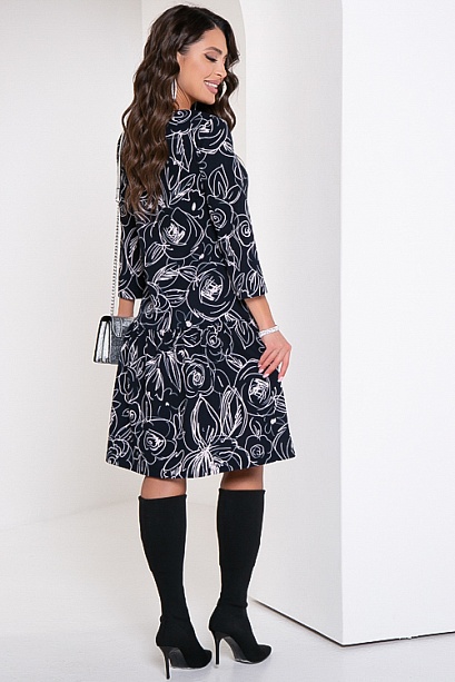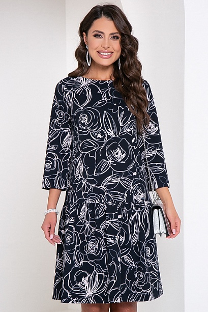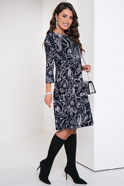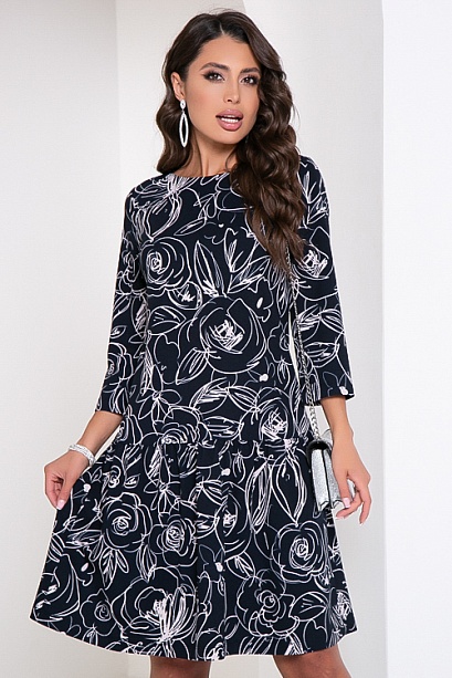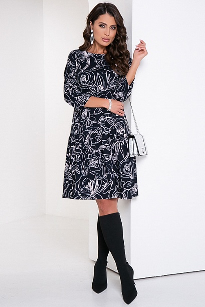 Платье свободного силуэта из трикотажного полотна с притачной оборкой по низу.
