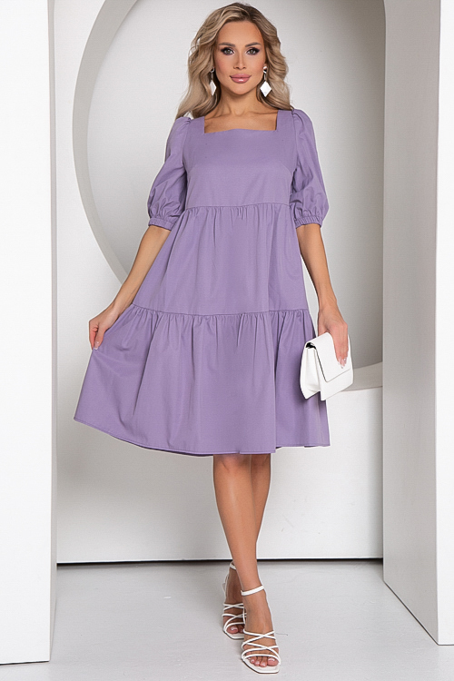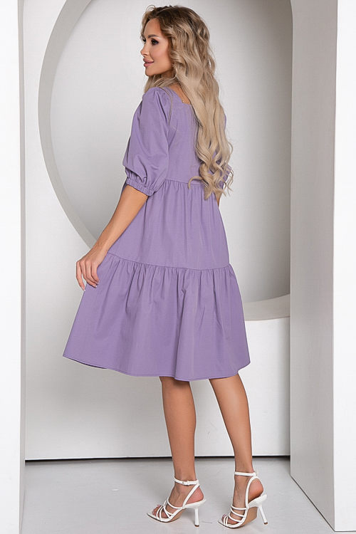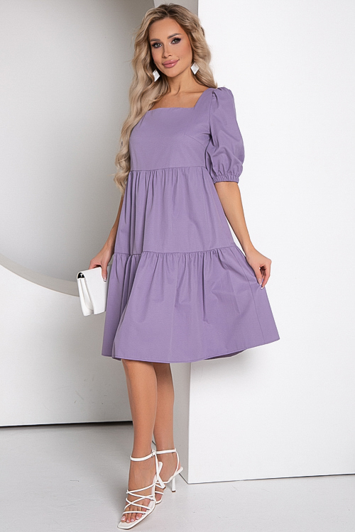 Платье из текстильного полотна свободного силуэта с притачными воланами.Горловина каре.