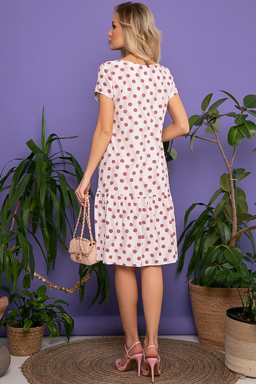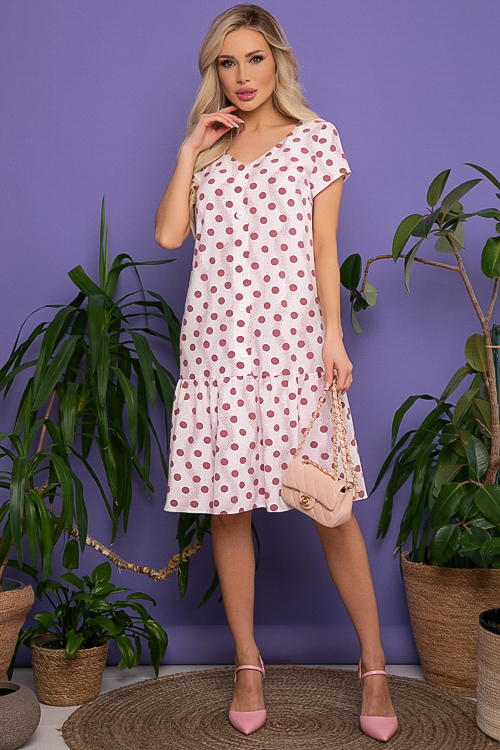 Платье из текстильного полотна трапецевидного силуэта с притачным воланом и поясом.