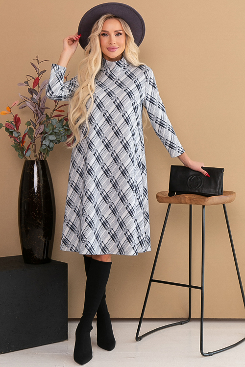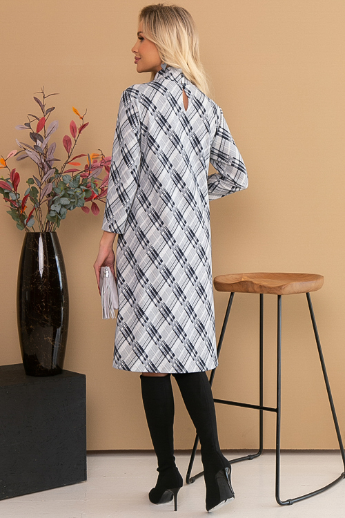 Платье трапеция из трикотажного полотна джерси в клетку,воротник стойка с застежкой на петли и пуговицы сзади.