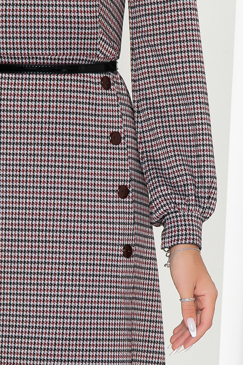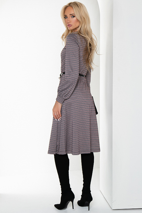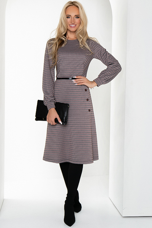 Платье из жаккардового трикотажного полотна,отрезное по линии талии.Ремень в комплект не входит.