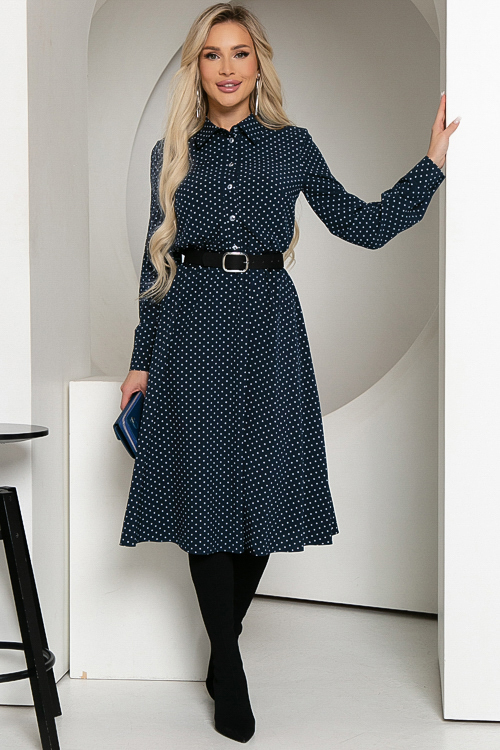 Платье из текстильного полотна отрезное по линии талии.Ремень в комплект не входит.