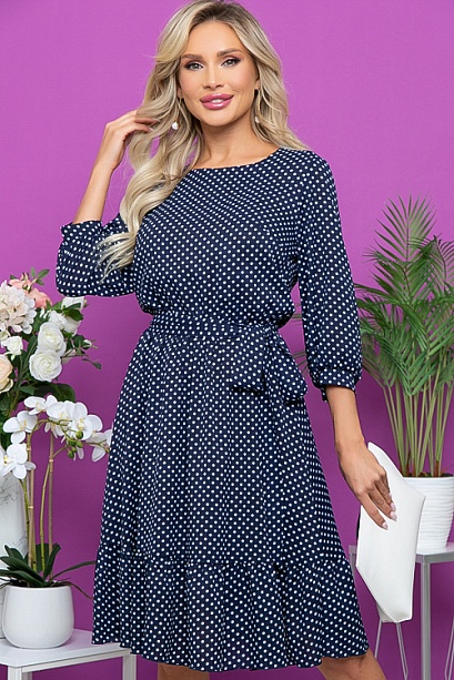 Платье из креп шифона,отрезное по линии талии,с притачной оборкой по низу.Пояс в комплекте.