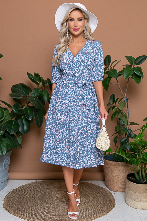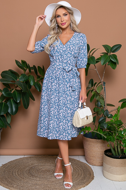 Платье из текстильного полотна,отрезное по линии талии с расклешенной юбкой.Лиф изделия на запах.