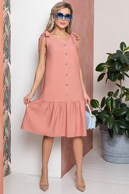 Платье А-образного силуэта из комфортного текстильного полотна с притачной оборкой по низу.