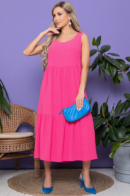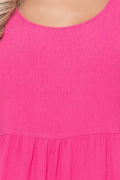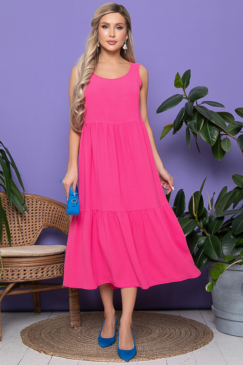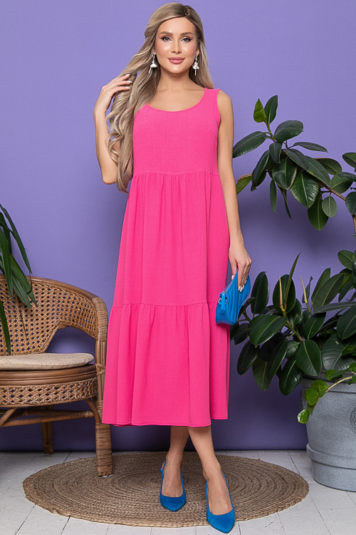 Платье из текстильного полотна свободного силуэта с двумя ярусами оборок.