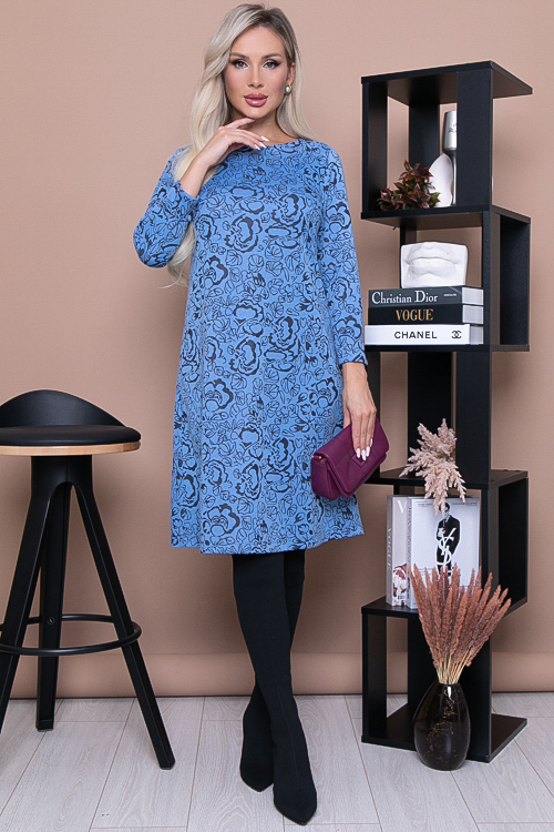 Платье А-образного силуэта из жаккардового трикотажного полотна.