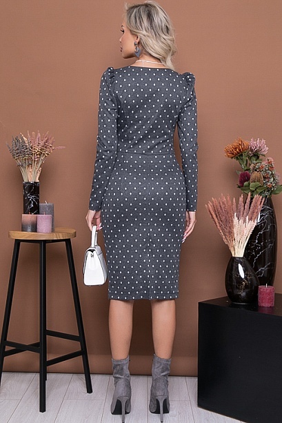 Платье в горох из комфортного трикотажного полотна жаккардового переплетения с вырезом каре.Ремень в комплект не входит.