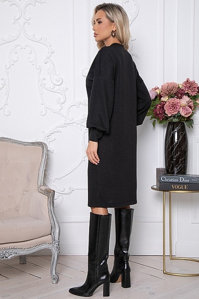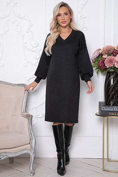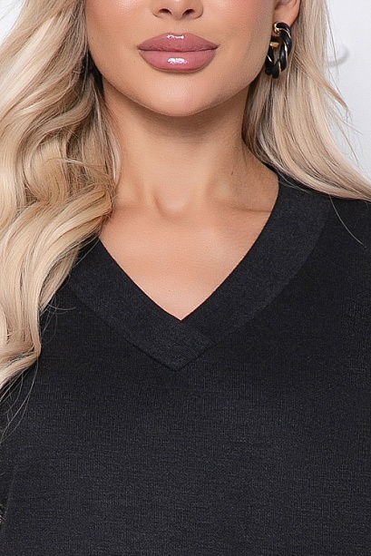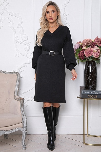 Платье из трикотажного полотна свободного силуэта с V-вырезом горловины и разрезами по бокам.Ремень в комплект не входит.