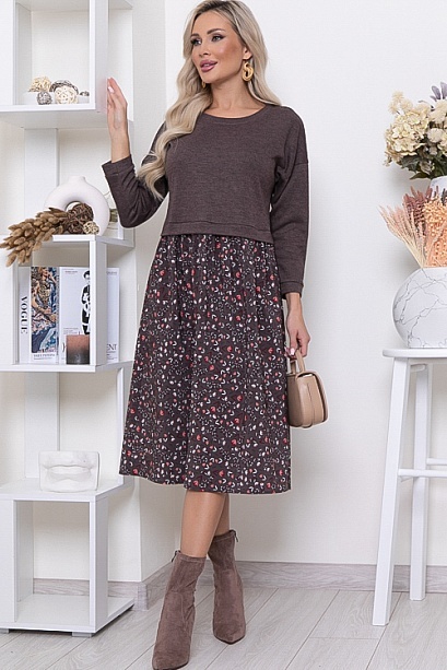 Комбинированное платье свободного силуэта.Верх из трикотажного полотна,низ из текстильного полотна.