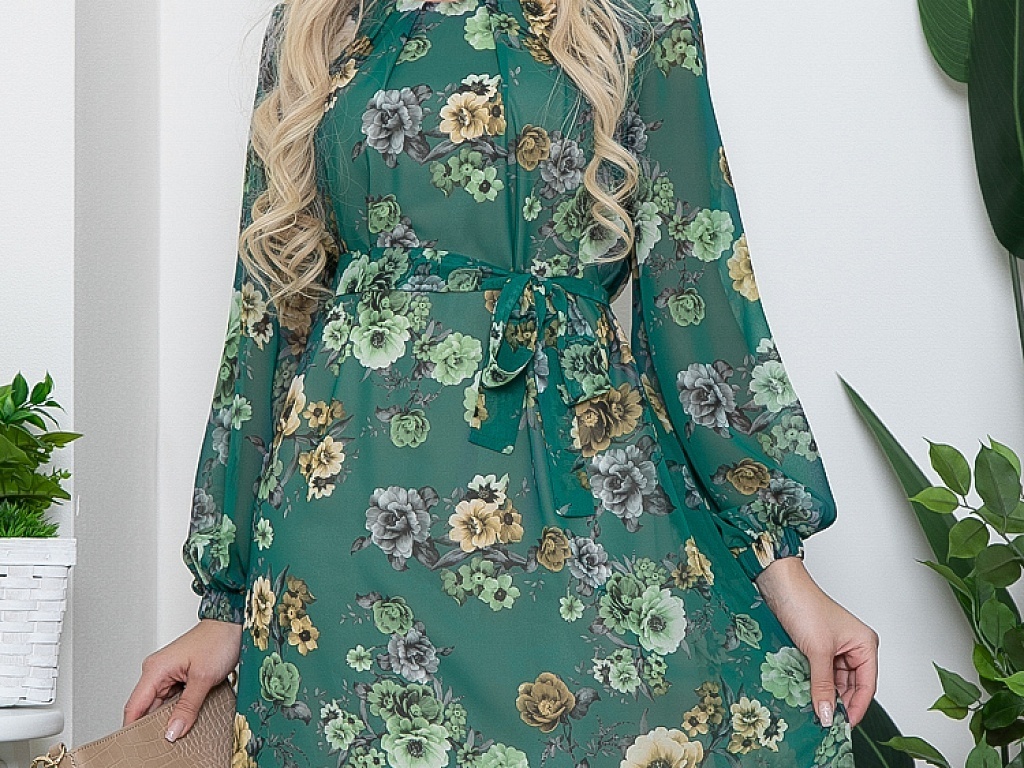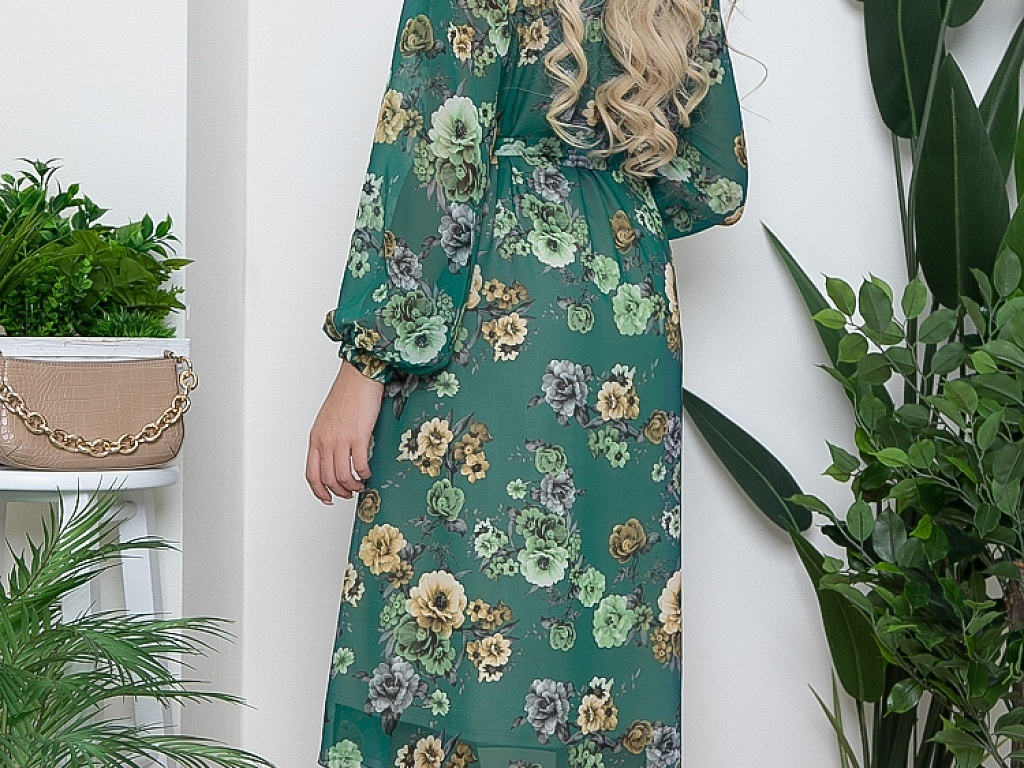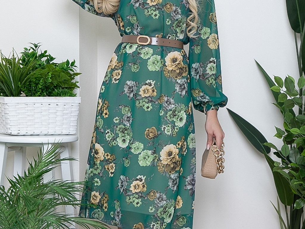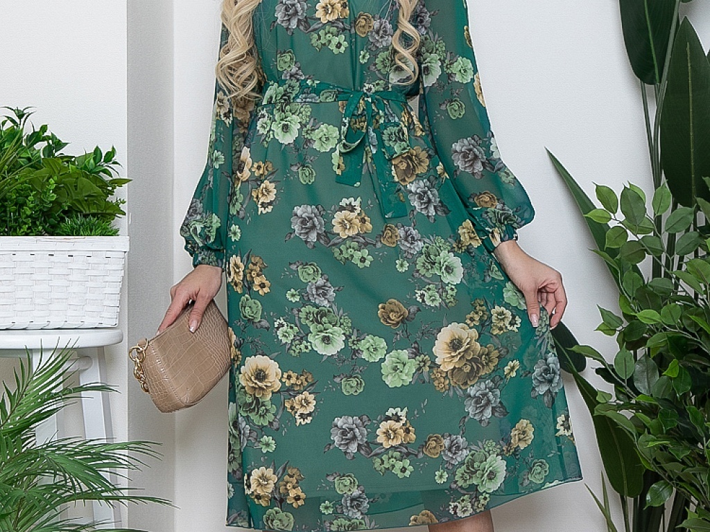 Платье свободного А-образного силуэта из шифона на трикотажном подкладе.Пояс в комплекте.Ремень в комплект не входит.