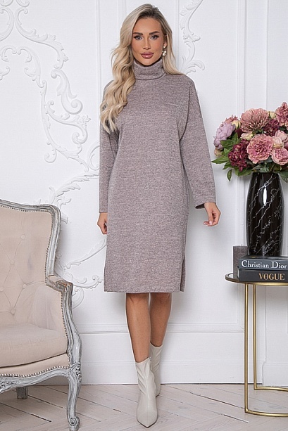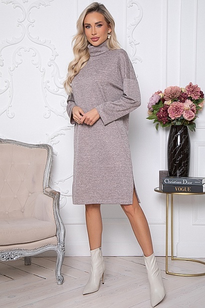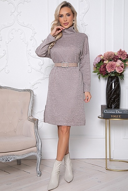 Платье из трикотажного полотна свободного,прямого силуэта с воротом хомут и разрезами в боковых швах по низу.Ремень в комплект не входит.