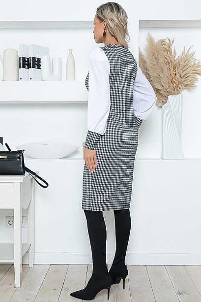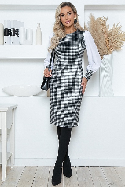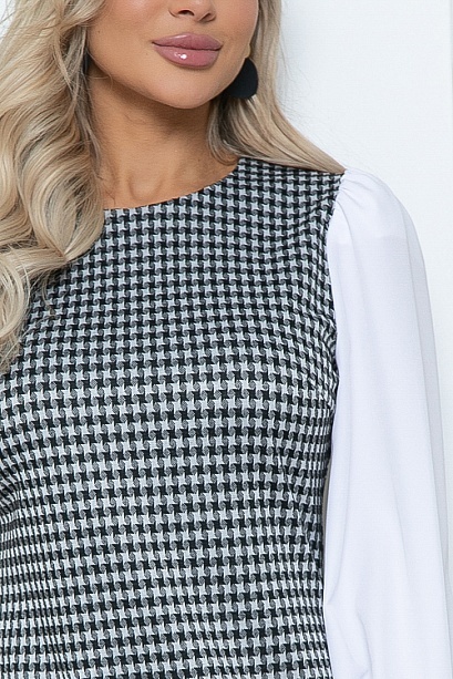 Комбинированное платье из жаккардового трикотажного полотна с рукавами из текстильного полотна. Ремень в комплект не входит.