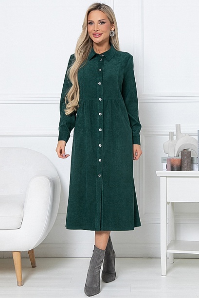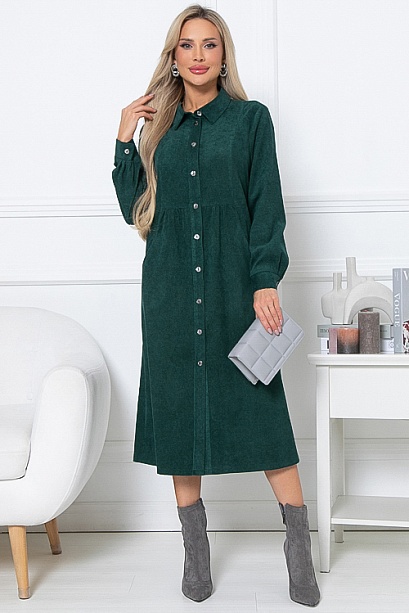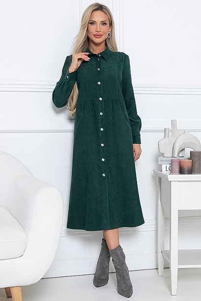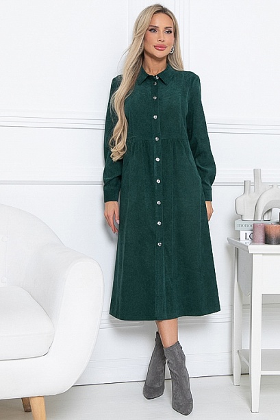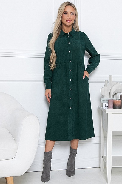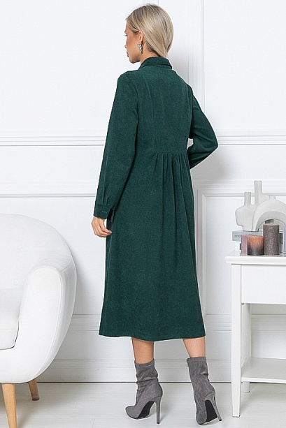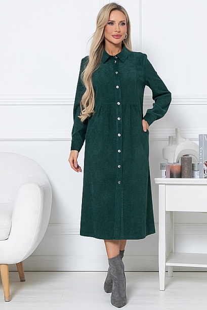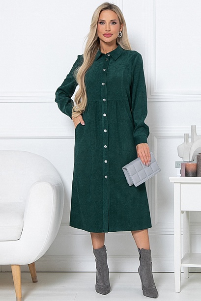 * Платье из микровельвета свободного силуэта.По переду центральная застежка на пуговицы до низа и функциональные карманы.Воротник отложной на стойке.