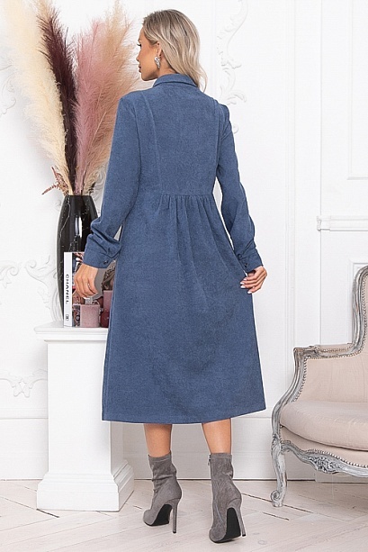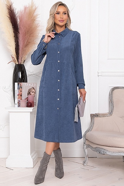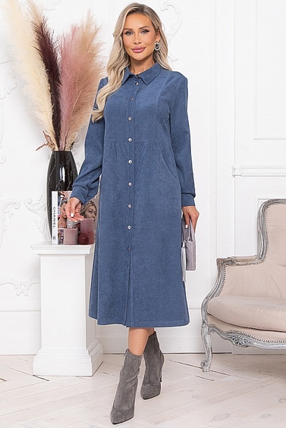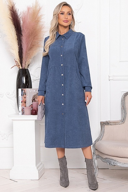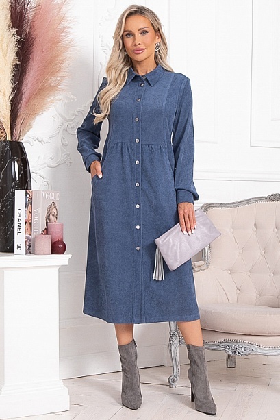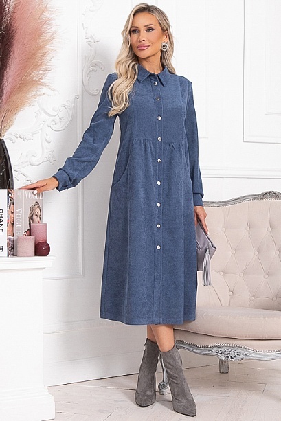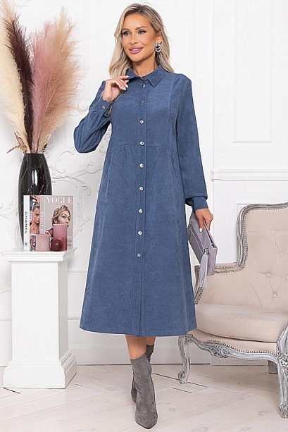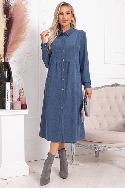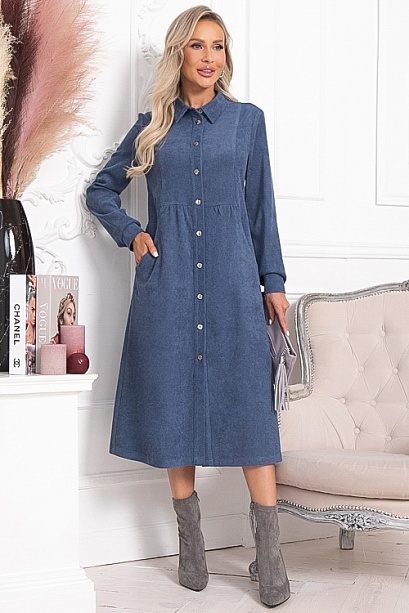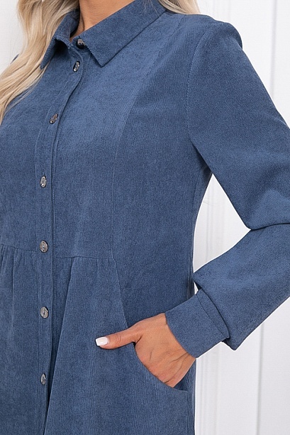 * Платье из микровельвета свободного силуэта.По переду центральная застежка на пуговицы до низа и функциональные карманы.Воротник отложной на стойке.