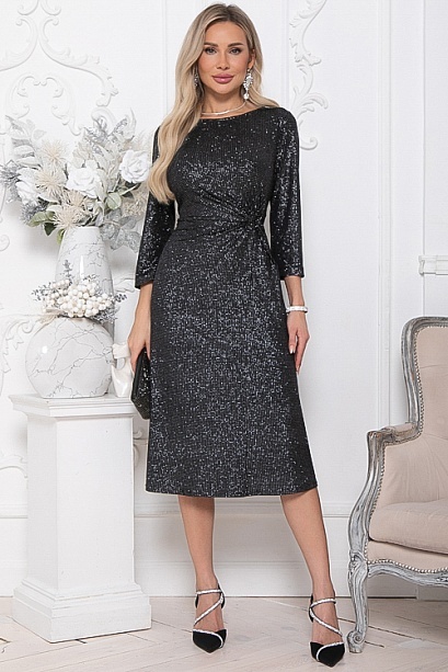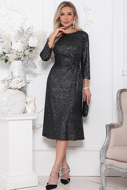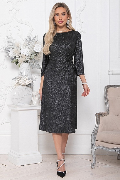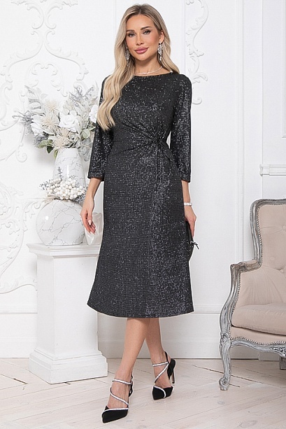 Нарядное платье полуприлегающего силуэта с расклешенной юбкой, из трикотажного полотна с блеском(ткань производство Ю.Корея).Изюминка платья ассиметричный узел-перекрут.