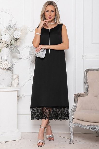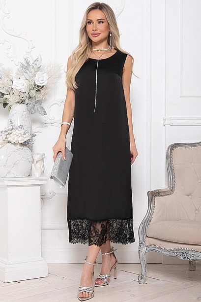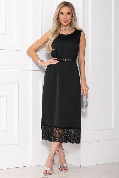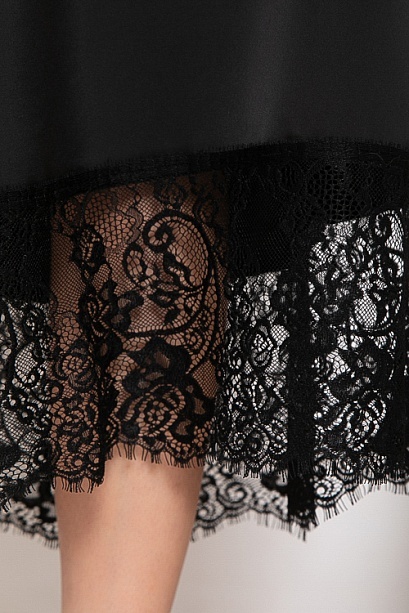 Платье из шелка А-образного силуэта по низу украшено кружевом.Ремень в комплект не входит.
