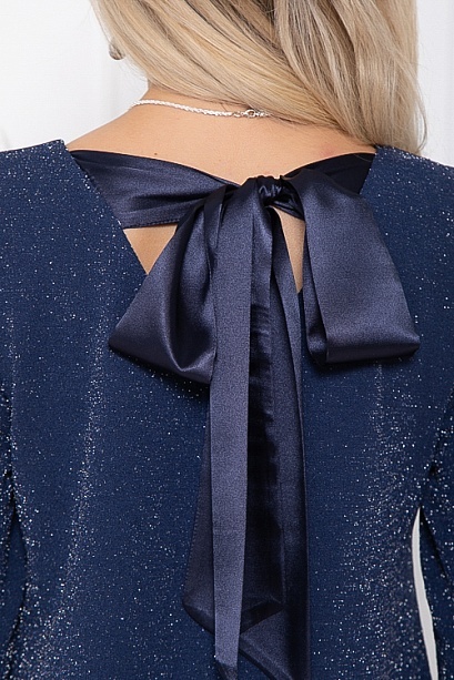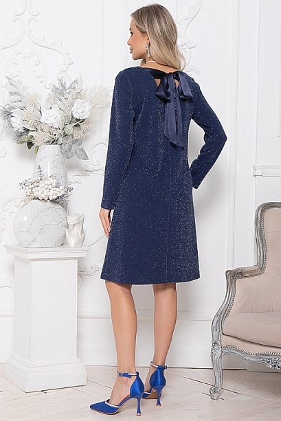Платье А-образного силуэта из трикотажного полотна с легким люрексом.Изюминка платья-вырез по спинке с завязывающимся бантом из шелка.