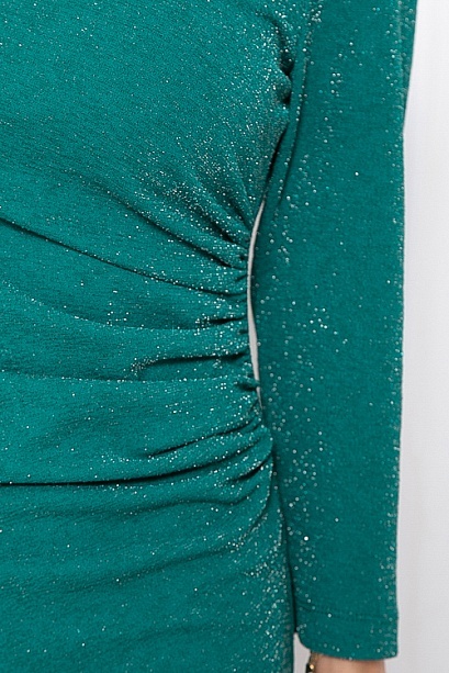 Платье из трикотажного полотна с легким люрексом, с эффектной драпировкой и разрезом по низу.