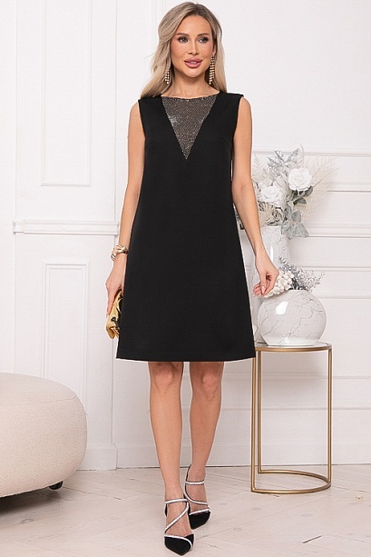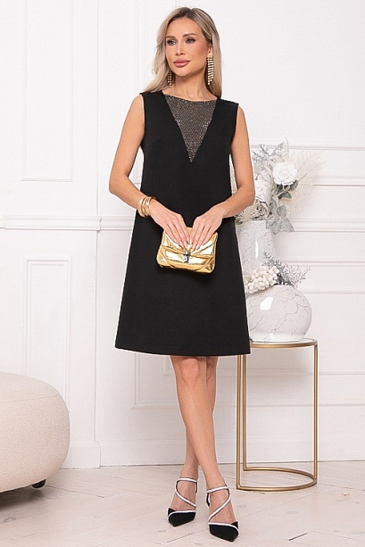 * Платье из костюмной ткани А-образного силуэта.Горловина оформлена нарядной вставкой из нарядной сетки.