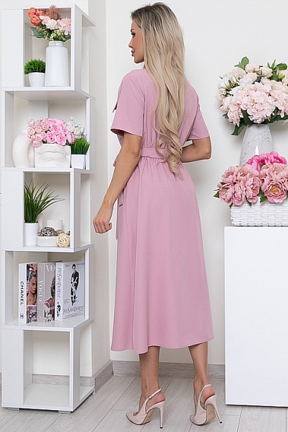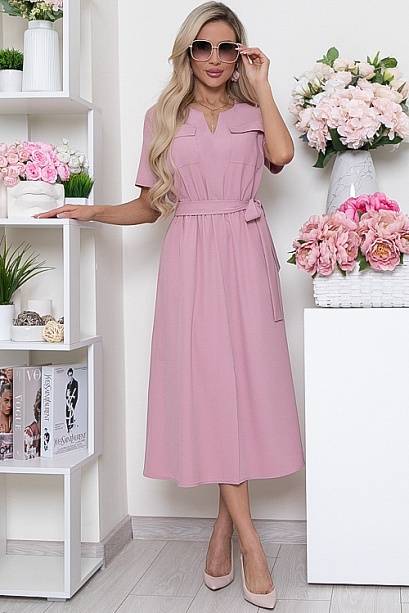 Платье из легкой костюмной ткани ,отрезное по линии талии, присборено на резину с расклешенной юбкой.Пояс из основной ткани в комплекте