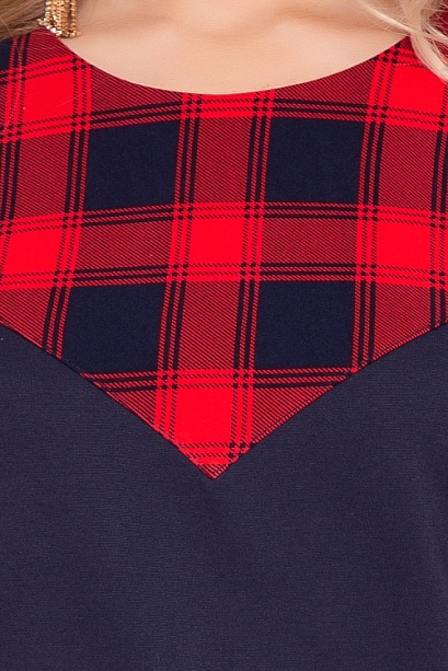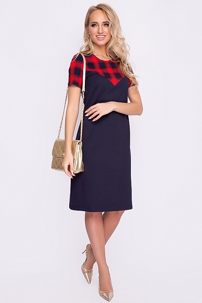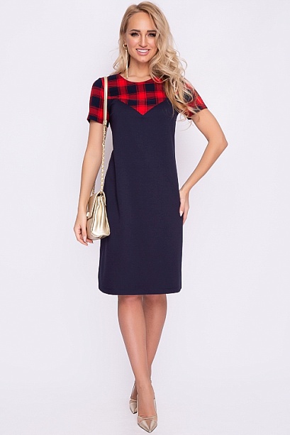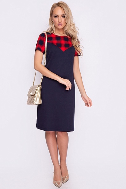 Платье А-образного силуэта из трикотажного полотна джерси,кокетка и рукава из костюмной ткани в клетку.