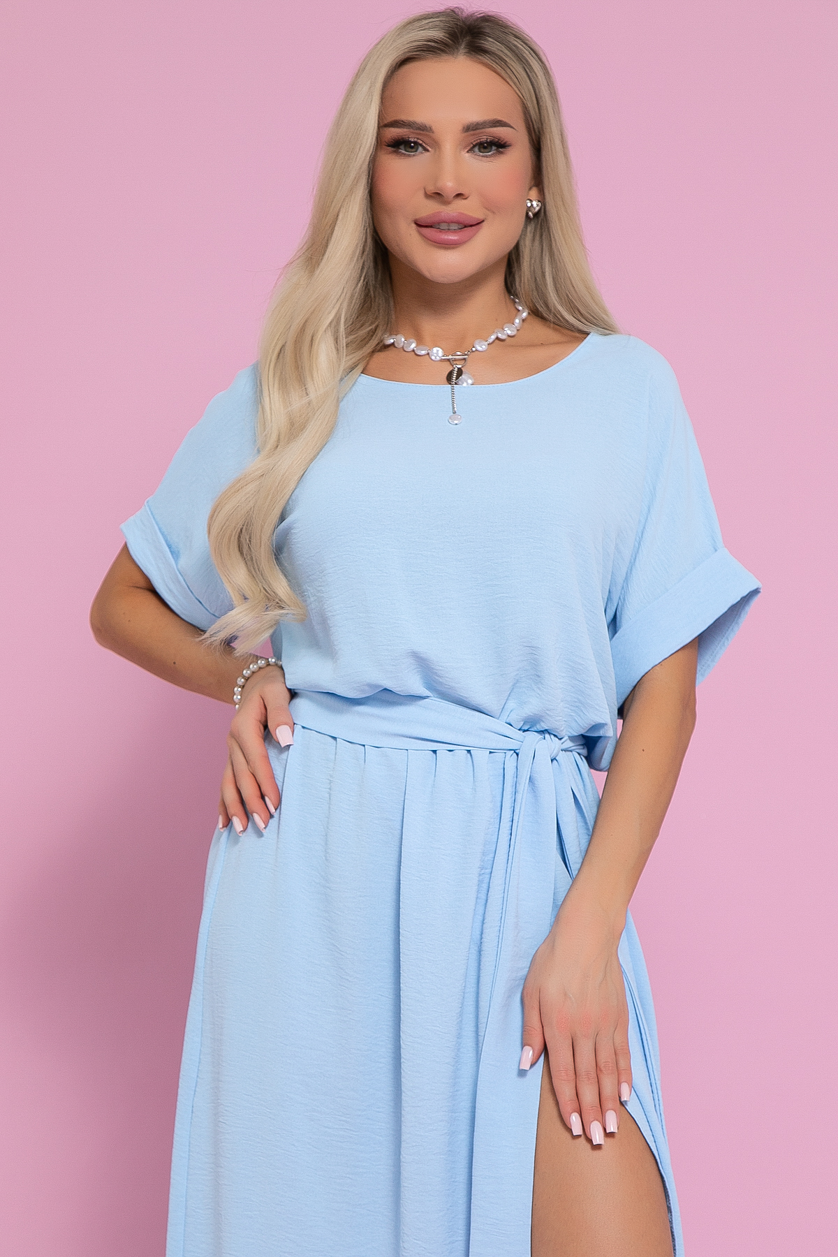 Это летнее платье для повседневных прогулок и встреч станет отличным дополнением вашего гардероба. Модель платья выполнена в длине макси. Свободный верх с округлой горловиной, с цельнокроеным укороченным рукавом. Низ рукава оформлен манжетом. Платье по талии на резинке. Низ изделия скроен на запах, что обеспечивает свободу в движении. В комплект входит пояс из основной ткани, который подчеркивает все достоинства фигуры.