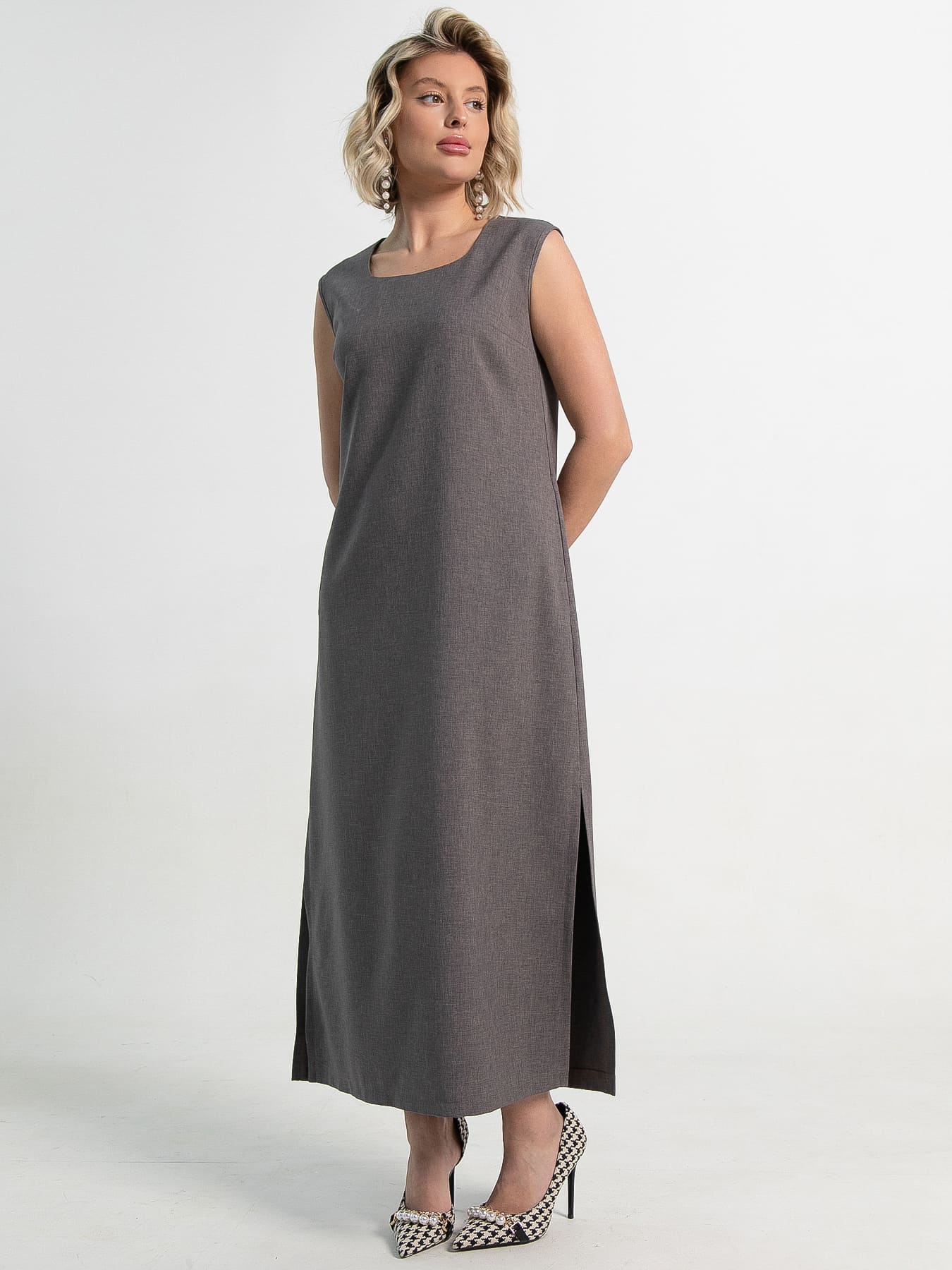 Платье-сарафан в кофейном цвете — это комфортный элемент гардероба, который станет незаменимым для любой женщины. Безрукавный крой обеспечивает максимальный комфорт и свободу движений, что особенно приятно в теплую погоду. Разрезы по бокам добавляют легкость и делают платье еще более комфортным. Идеально для прогулок по городу или встреч с друзьями, сочетая стиль и практичность.