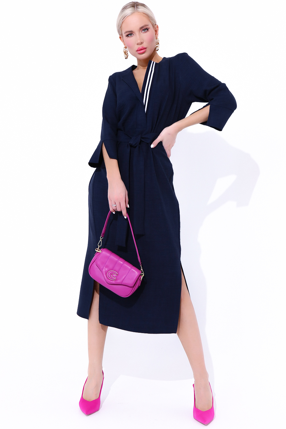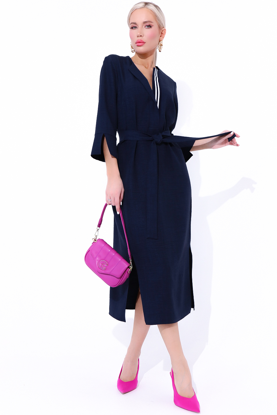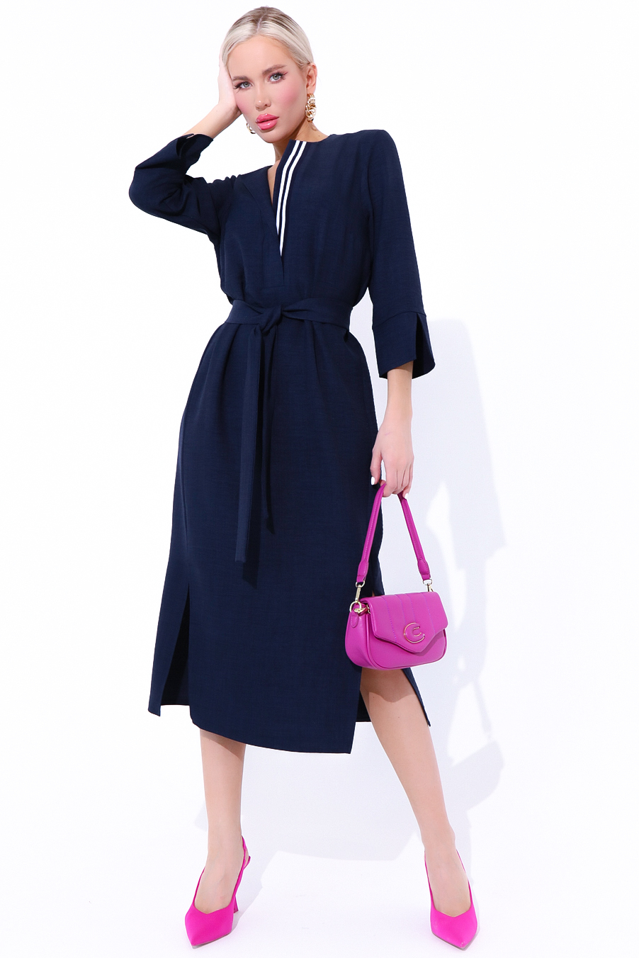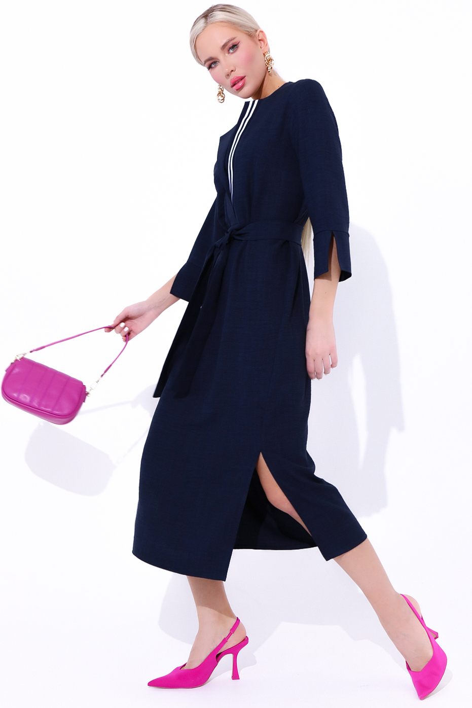 Выбирай настроение на весь день! Модно, стильно, нарядно! Именно так Вы будете выглядеть в платье "Дивайс" от ELZA! Платье свободного силуэта, рукав втачной 3/4 с манжетом, планка с декоративной тесьмой, пояс съемный.