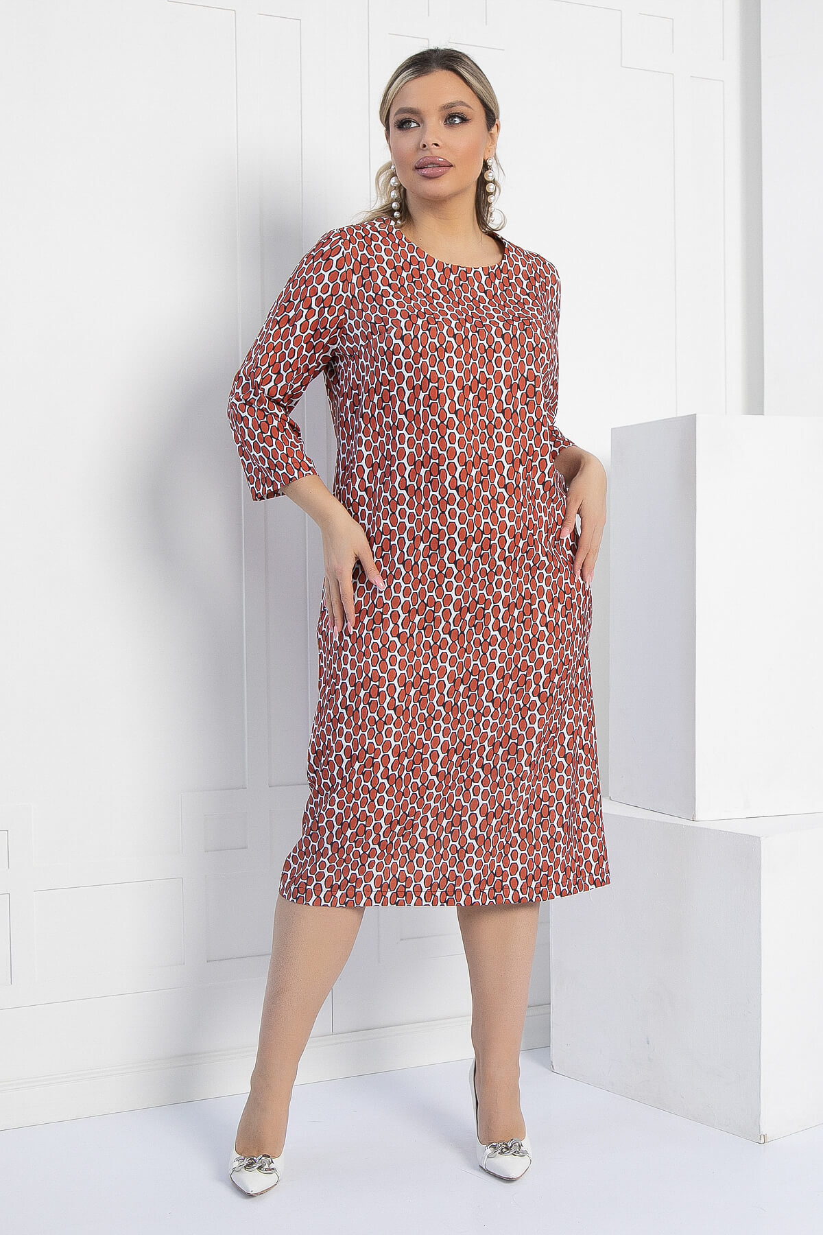 Платье насыщенного терракотового оттенка — подойдёт как для повседневной носки, так и для особых мероприятий. Оно имеет длинные рукава и округлый вырез, что придаёт ему элегантный и изысканный вид. Благодаря втачным рукавам платье становится более комфортным, а тканевый пояс с пряжкой подчёркивает талию и акцентирует внимание на фигуре. Сочетайте его с любимыми аксессуарами и обувью, чтобы создать неповторимый образ!